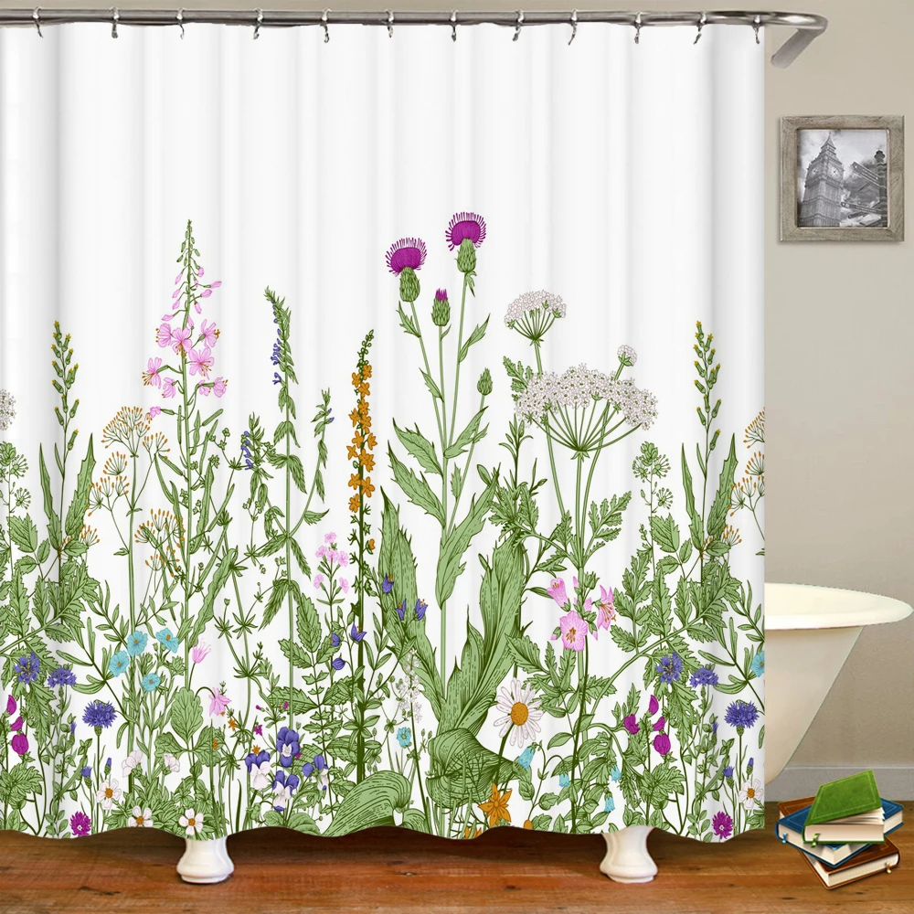 Занавеска для душа с сельским пасторальным цветочным пейзажем, зана...