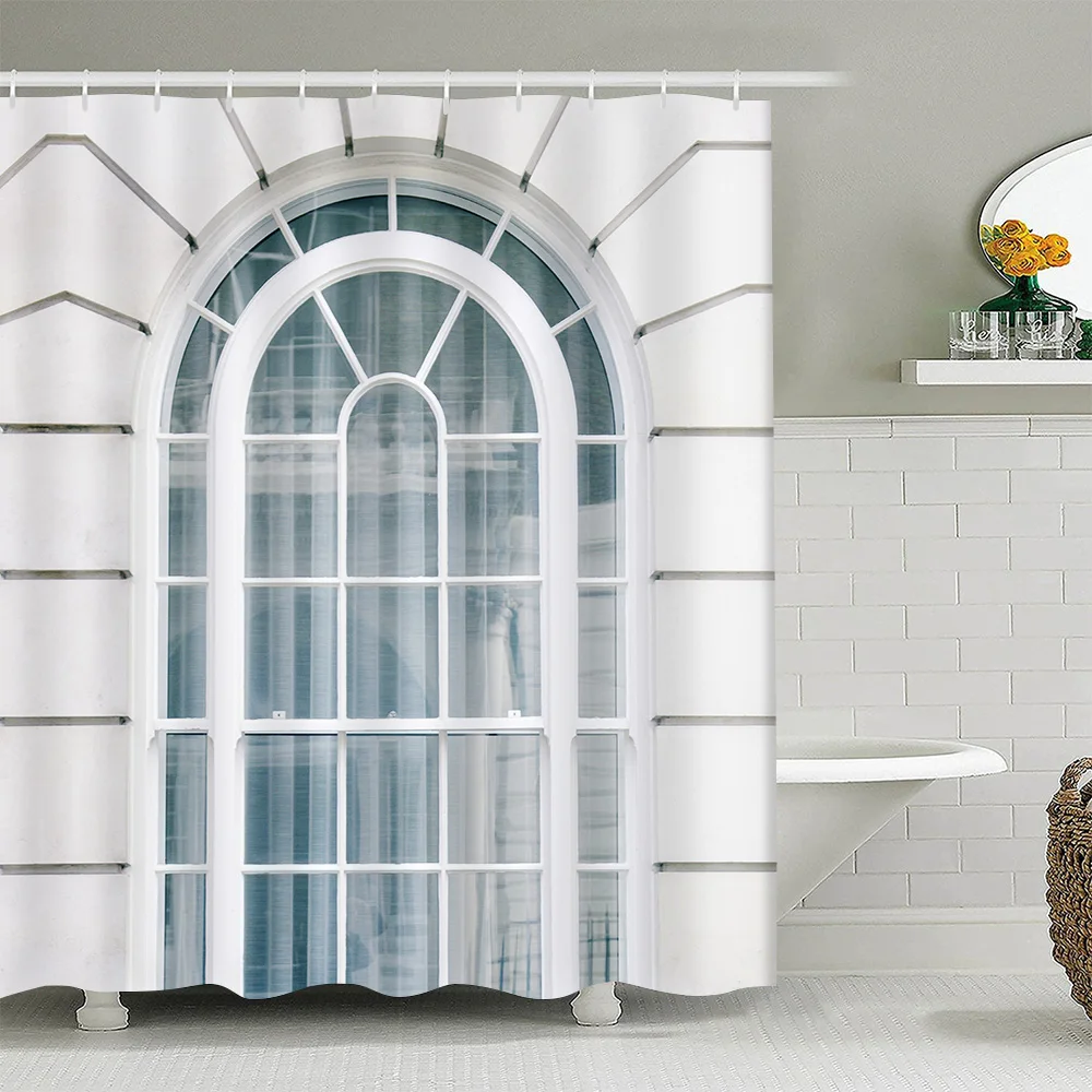 Занавеска для душа с изображением пляжа и окна, настенная Водонепроницаемая шторка из полиэстера для ванной комнаты в скандинавском стиле, простота ванны