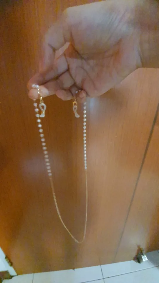 Цепочка - красивая нежнятина. Мне очень понравилась. Длина без учёта силиконовых резинок 68 см. Пришла за 17 дней в Ростовскую область, что не так долго. Посмотрим как быстро потемнеет, и как камешки будут держаться. Как раз сезон для проверки.