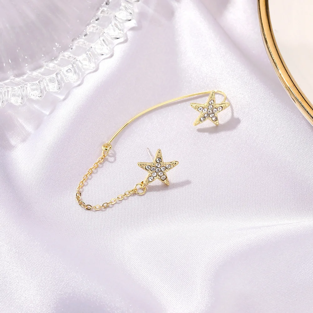 Женские серьги-гвоздики с кристаллами в виде звезд, винтажные золотые серьги-каффы с одной стороны, подарок на Рождество, День святого Валентина для девушек