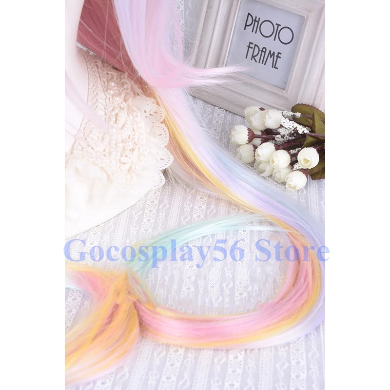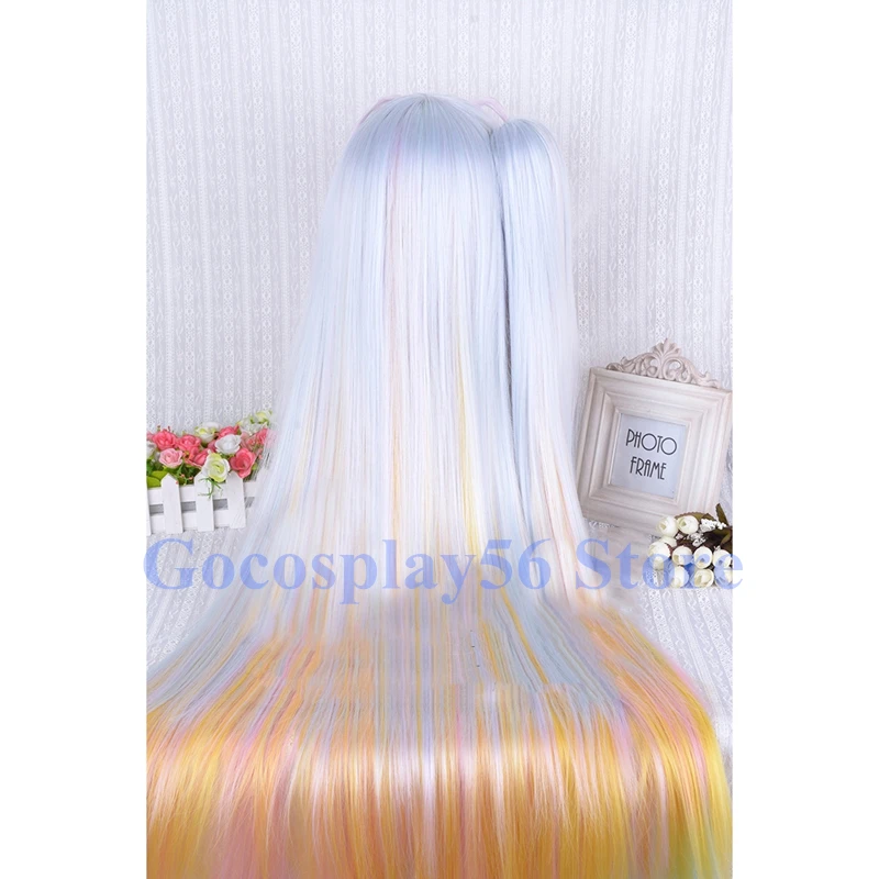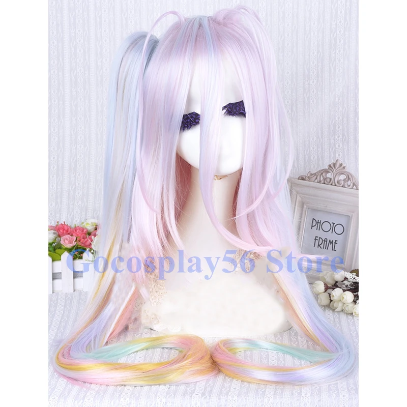 Нет игры нет жизни Широ, Сора Косплэй парик, "конский хвост", градуальный синего, розового и желтого цветов 110 см Длинные прямые Аниме синтетические волосы ролевая игра