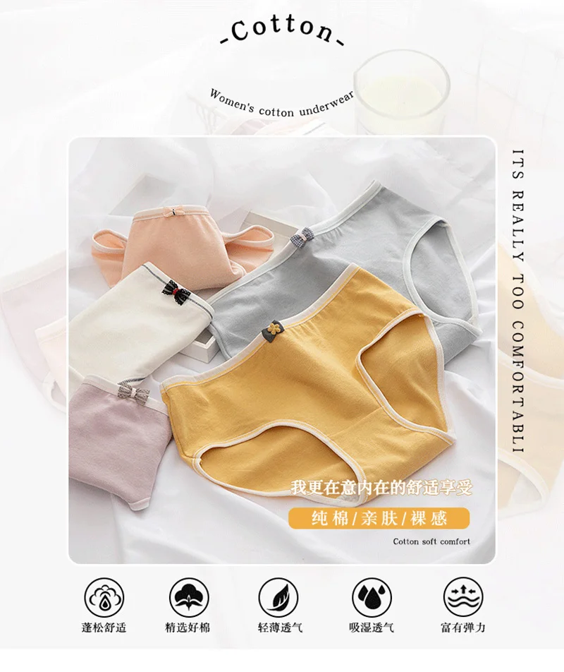 Сексуальные женские хлопковые трусики, женское милое нижнее белье д...