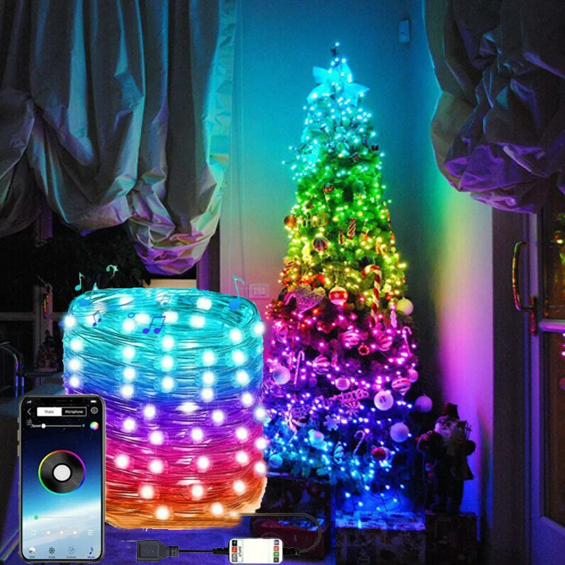 Светодиодная гирлянда с USB, лампа с медным проводом и управлением через приложение, водонепроницаемая, IP65, для украшения рождественской елки, совместимая с Bluetooth
