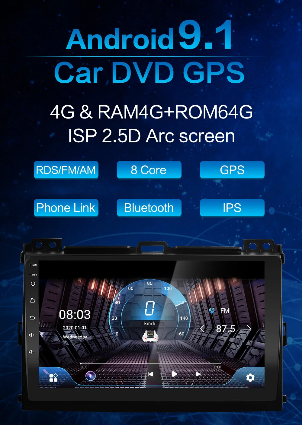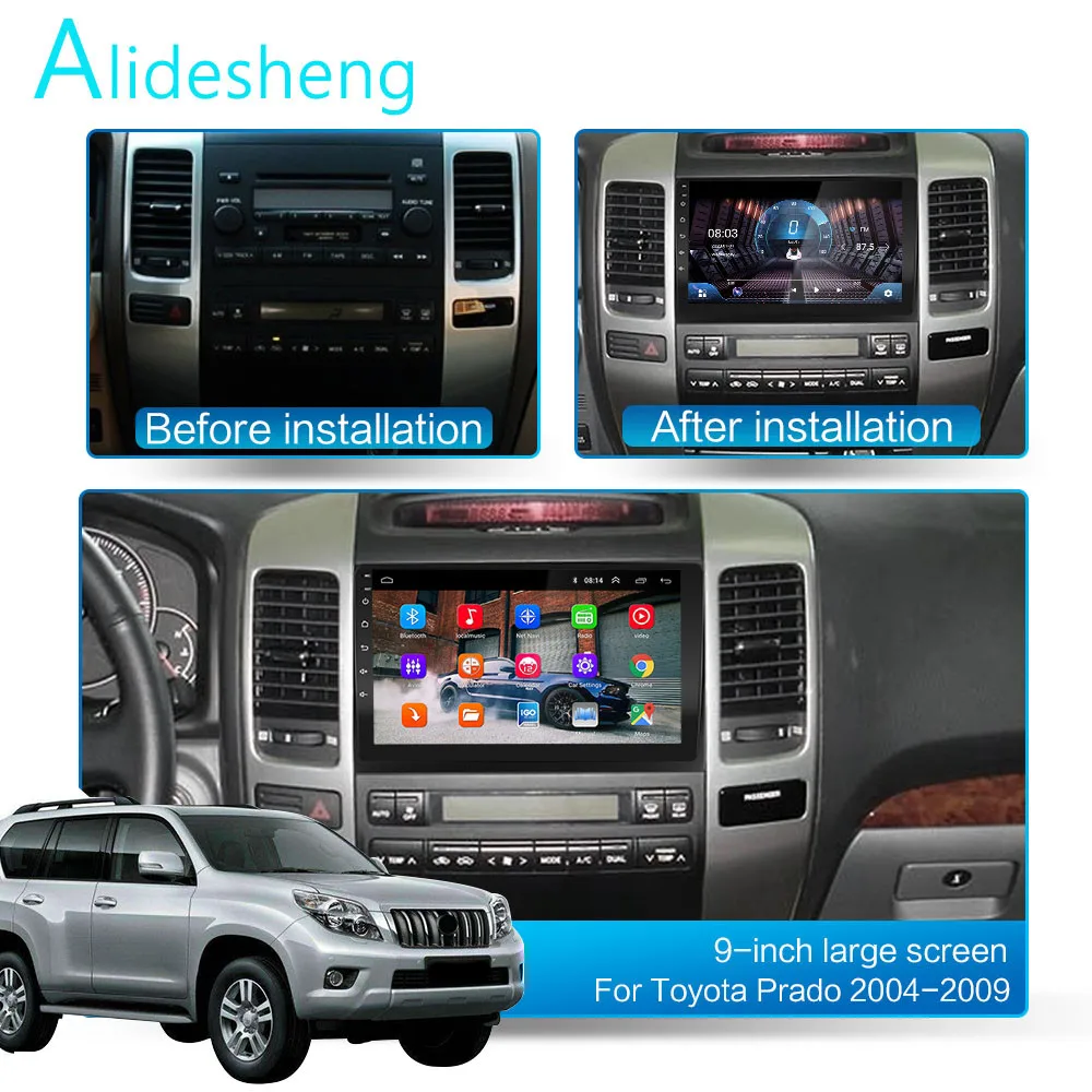 Android 9,0 автомобильное радио Toyota Land Cruiser Prado 120 2004 2005 2006 2007 2008 2009 9 дюймов 1024*600 8 ядер wifi Bluetooth Видео Аудио мультимедиа 2 din автомобильный dvd плеер