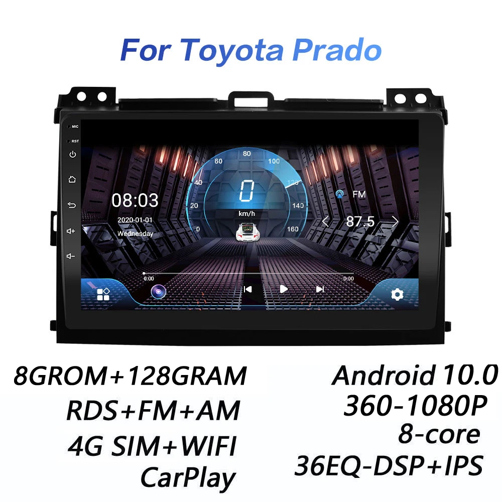 Автомобильная Мультимедийная система 8G + 128G DSP 2 din Android 8. 0 4G сетевой мультимедийный видеоплеер для Toyota Land Cruiser Prado 10,0 120-2004 carplay