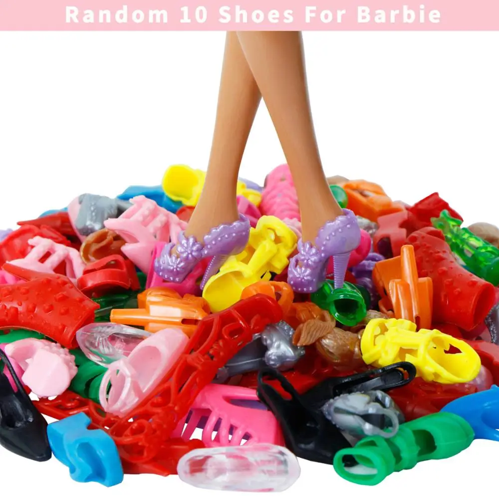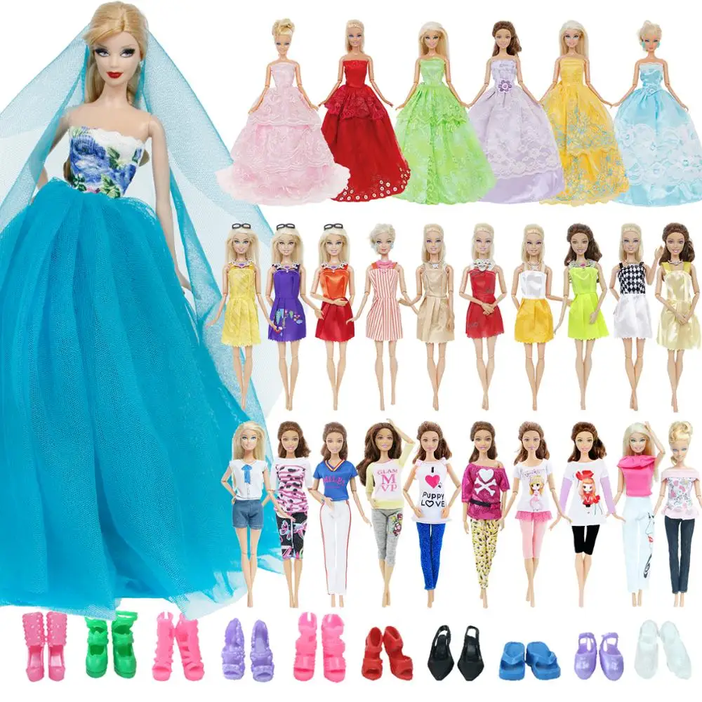 35 шт.партия = 3 вечерние них платья с длинным хвостом + 10 мини-платьев + 2 штанишек + 10 туфель + 10 аксессуаров, Одежда для куклы Барби