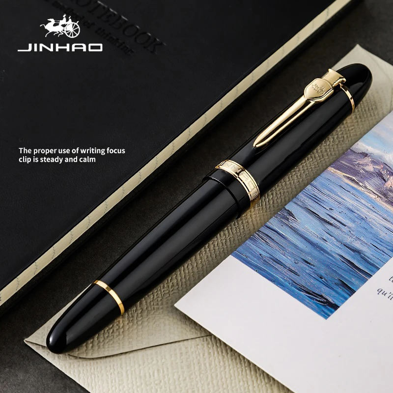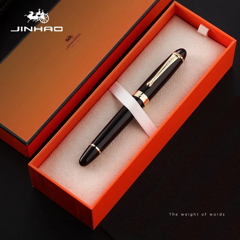 Роскошная ручка Подарочная коробка набор Jinhao фонтан средний или изогнутый 1,0 мм перо тяжелый черный каллиграфия бизнес Canetas