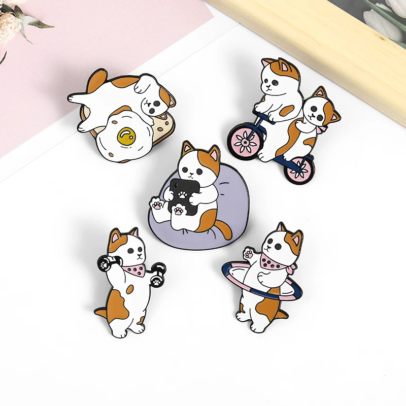 Мультяшный Кот яйцо велосипед гантели хула кольцо Броши забавные ко...