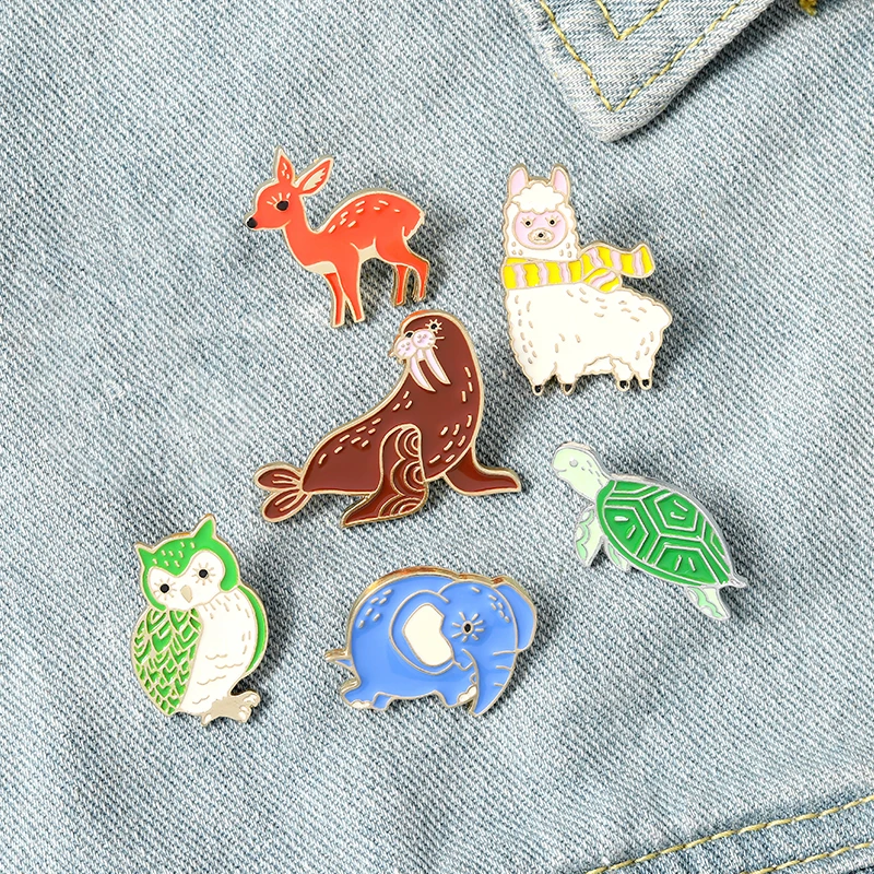 Забавные Животные зоопарк эмалевые Броши морж Альпака олень Сова че...