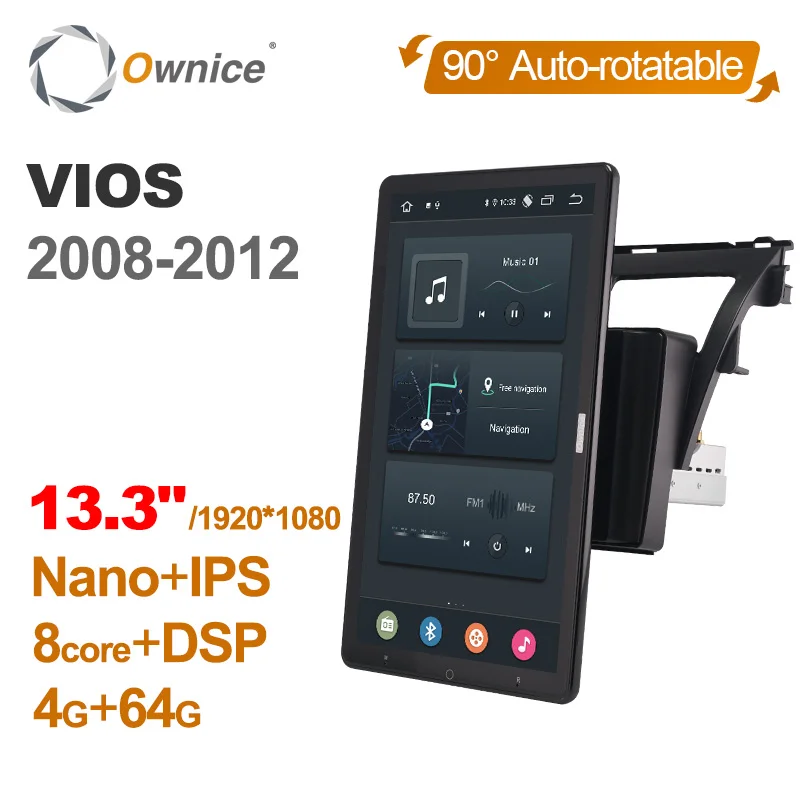 Автомагнитола Ownice, 1 Din, 1920x1080, Android 10,0, 13,3 дюйма, GPS, мультимедиа, DSP, для Toyota VIOS 2008 - 2012
