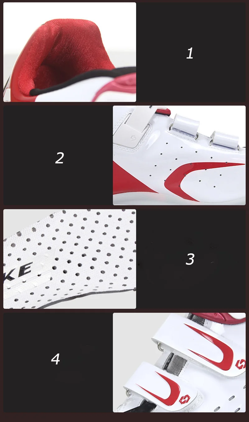 Информация1. Нескользящая лайкра используется внутри для увеличения трения и не легко скользить.2. Новые вентиляционные отверстия на внутренней талии улучшают поток воздуха в обуви и делают гонщика более комфортным.3. Стелька покрыта вентиляционными отверстиями, что увеличивает воздухопроницаемость обуви. Выступ подошвы стопы обеспечивает дополнительную поддержку, увеличивает дугу положения арки и усиливает обертывание арки.4. Классическая регулируемая система ремешка не вызовет слишком большого давления на подъем, как стальная проволока При затягивании, она удобна и делает верхнюю часть более подходящей для подъема.
