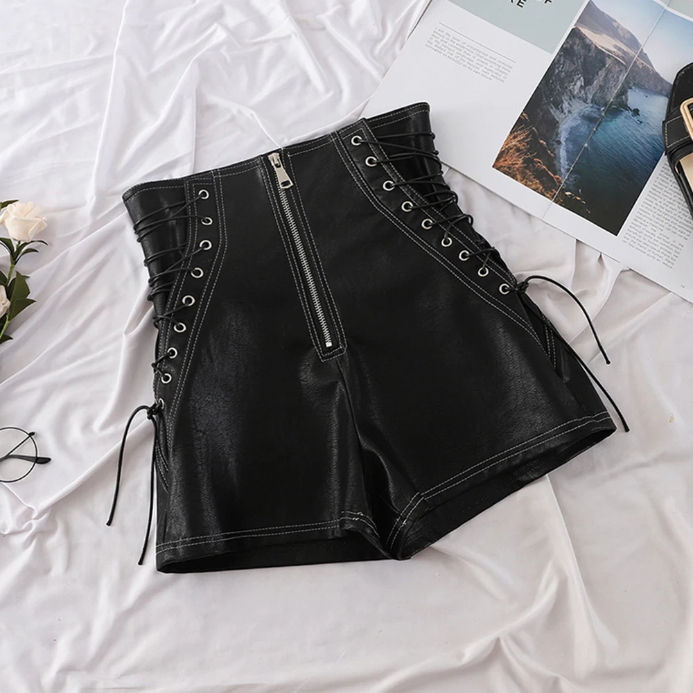 Шорты женские из экокожи, повседневные Прямые тонкие черные на молнии, с завышенной талией, в готическом стиле, Клубные пикантные, в стиле панкхип-хоп, лето 2020