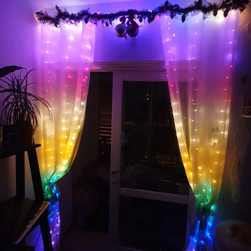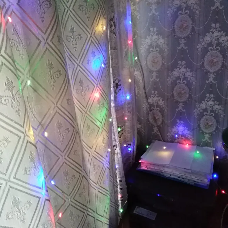Красивая гирлянда штора.❤️ Доставка около месяца, укакована хорошо. Всего на ней 12 спусков вниз. Колечки растягиваются и получается очень длинная гирлянда. Длины хватает от потока до самого пола, даже лишее остаётся. Выглядит очень красиво, ночью комнату освещает хорошо, получается романтичное освещение. Всем довольна. К покупке рекомендую.
