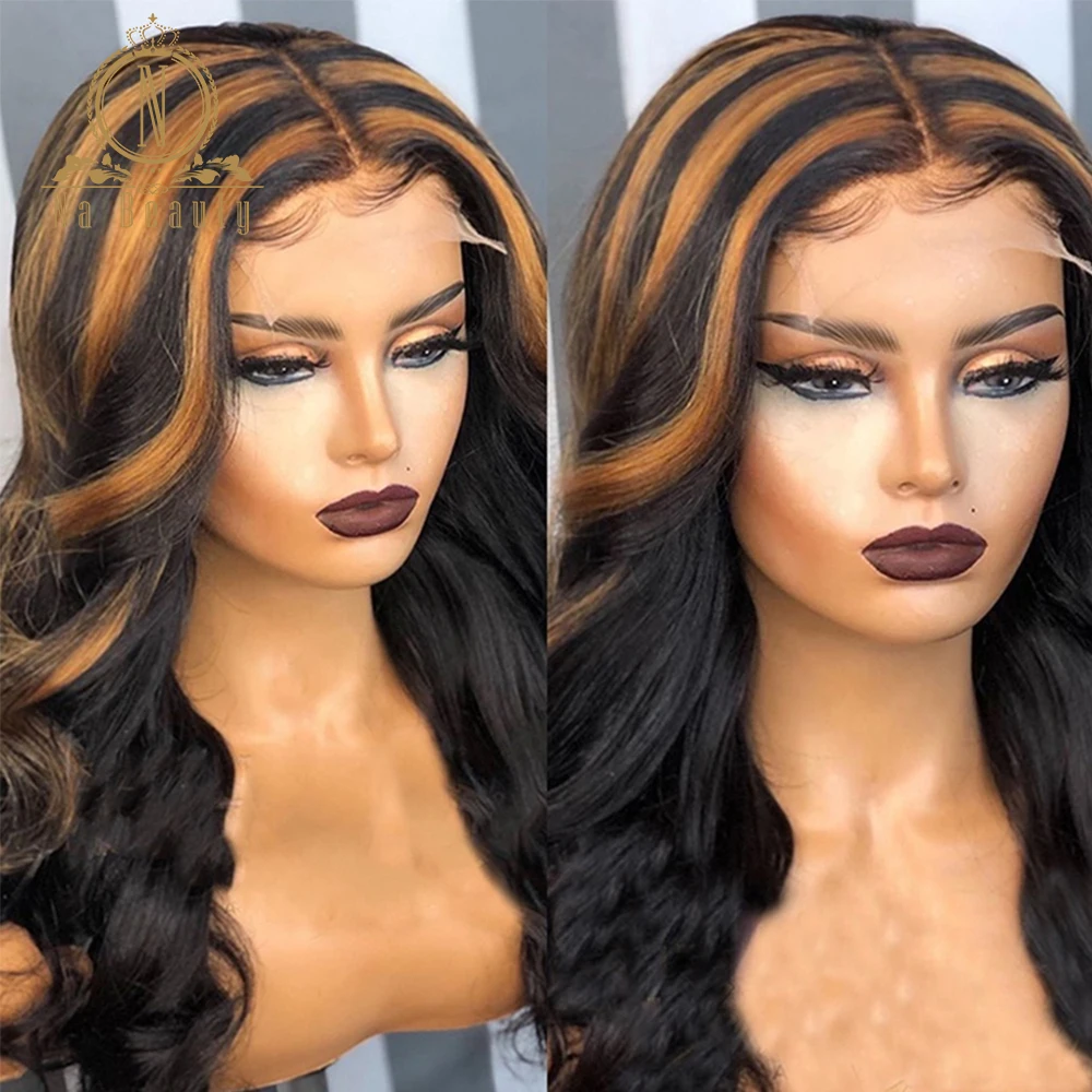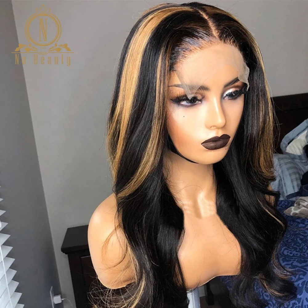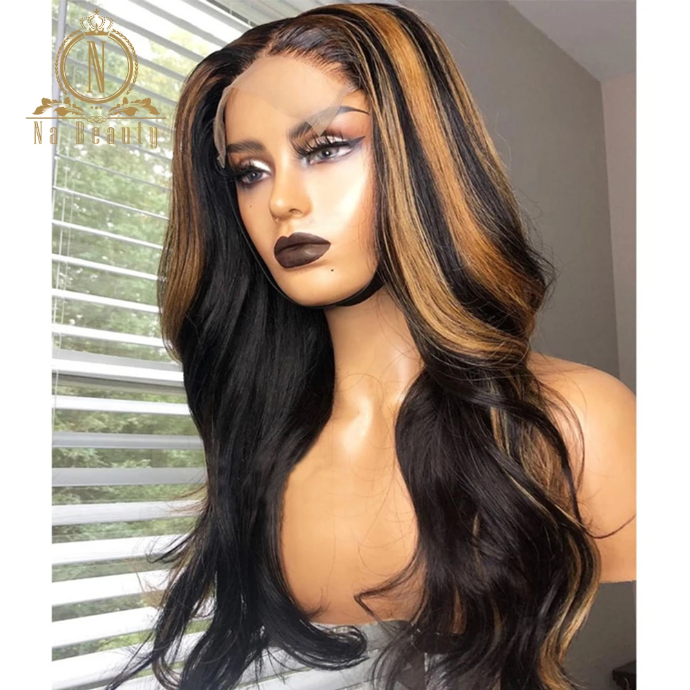 Черный с коричневым хайлайтером парик 4x4 парик с застежкой волнистые человеческие волосы парик для черных женщин 180 плотность бразильский Nabeauty