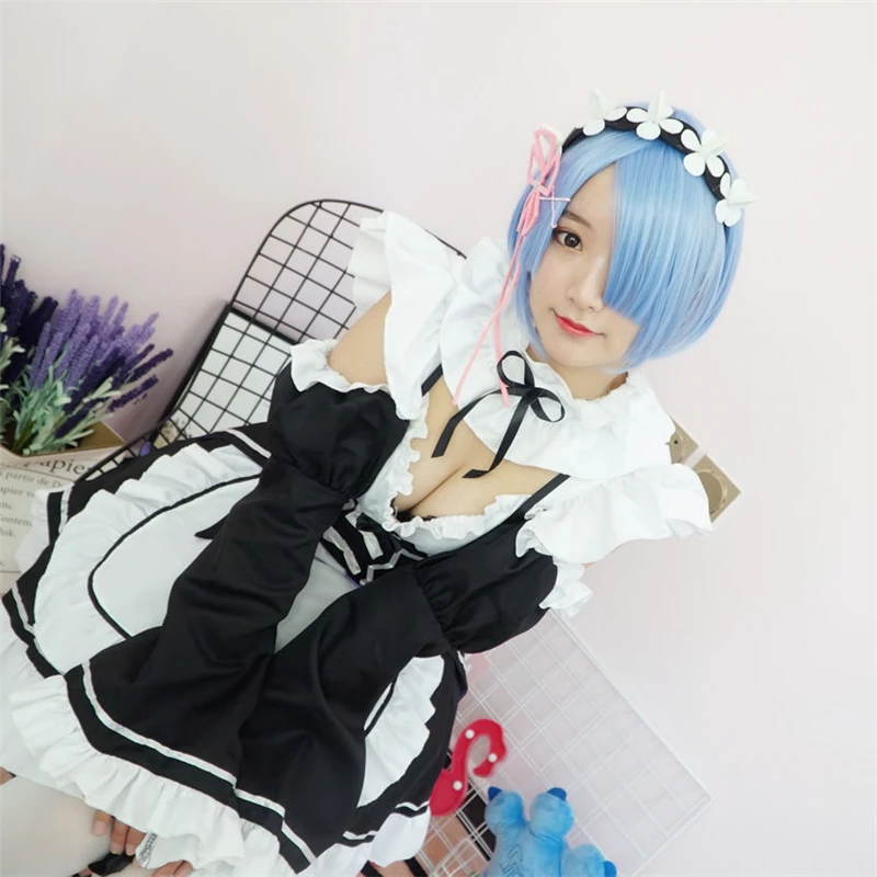 Косплей платье горничной RAMREM жизнь в другом мире от нуля сексуальная одежда Лолита Платье Аниме Косплей костюмы парик на Хэллоуин