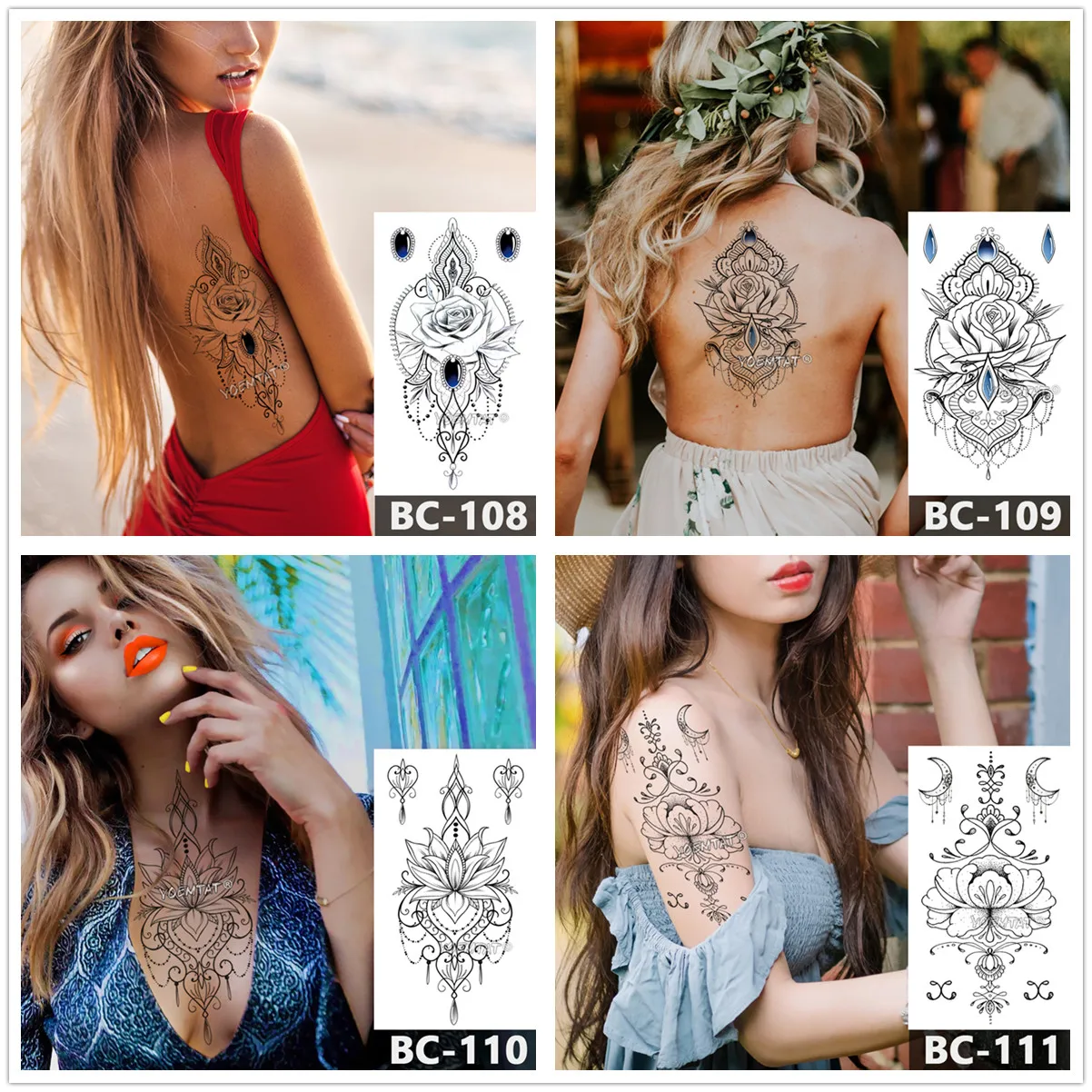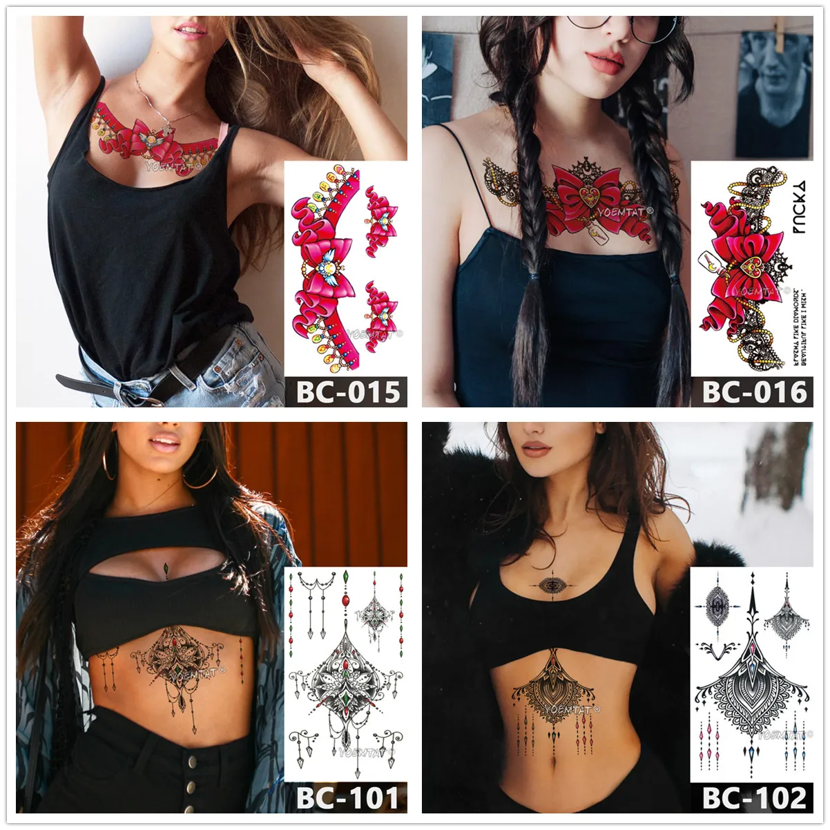 1 лист для грудной клетки татуировки Временные водонепроницаемые украшения в форме сердца, замок с перьями, с рисунком крыльев, наклейка на талии татуировки, серебряные ювелирные изделия, Стикеры