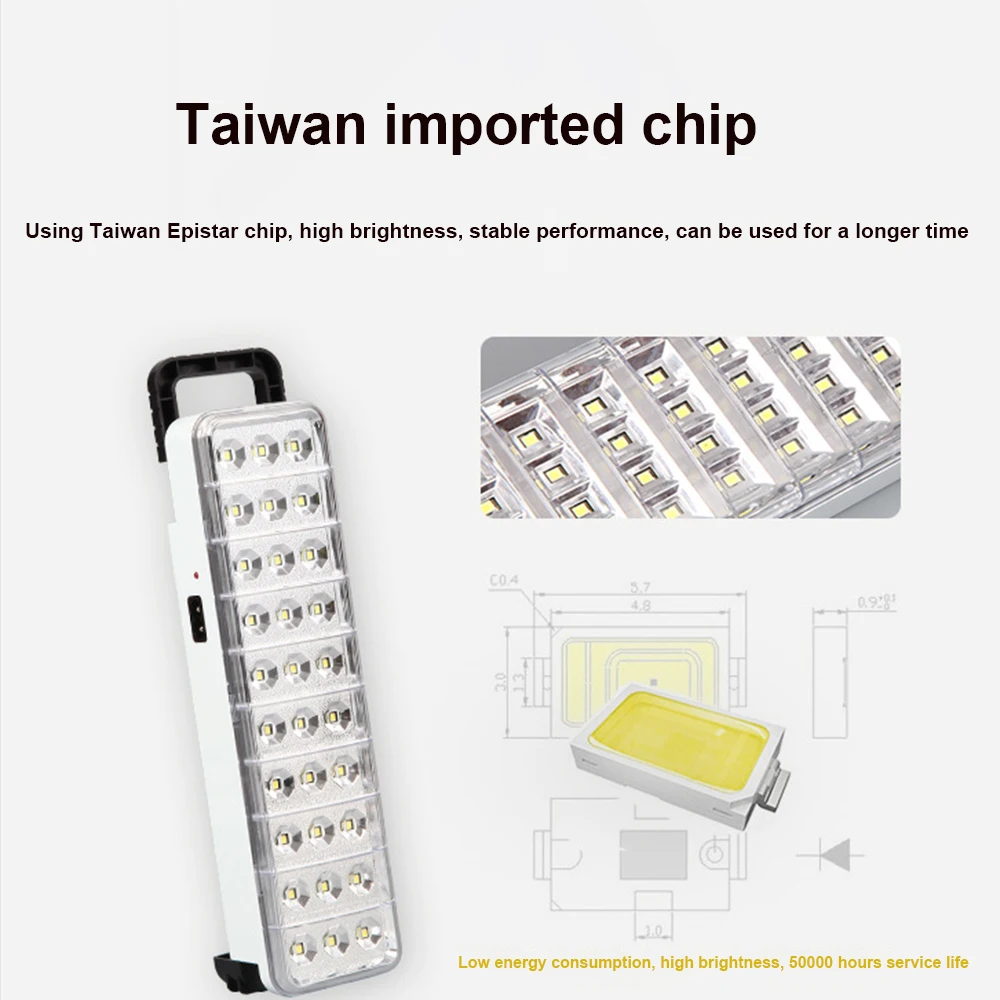 Многофункциональный светодиодный аварийный фонарь, 30 светодиодов, 2 режима, встроенный литиевый аккумулятор 1100 мА ч, для кемпинга, улицы