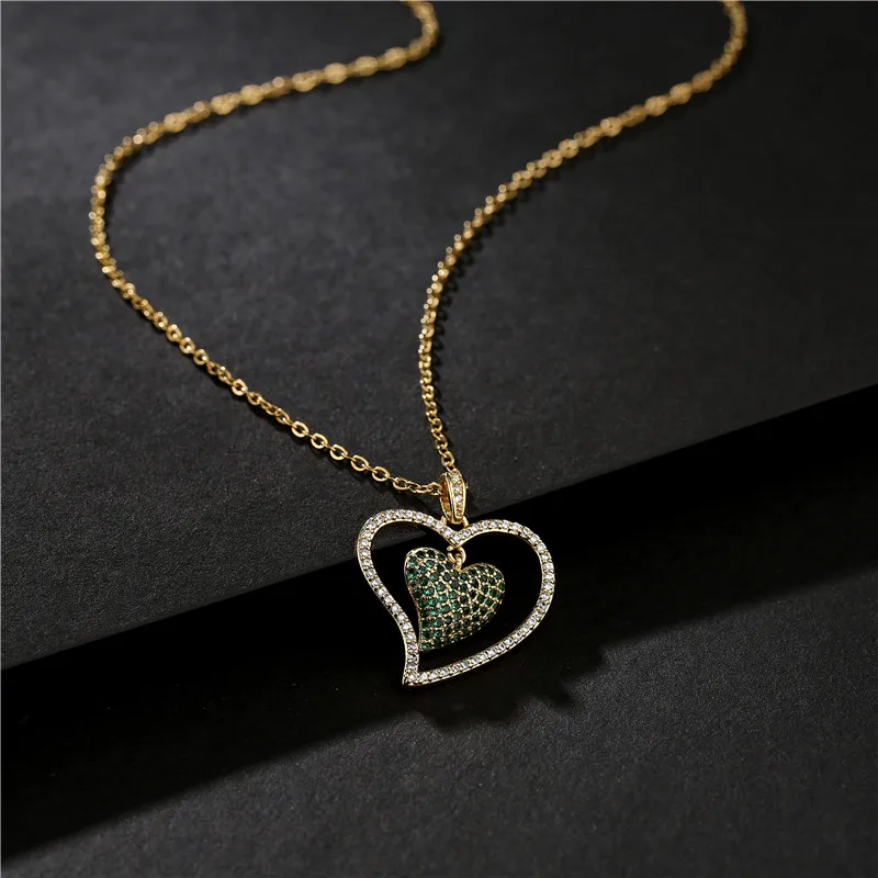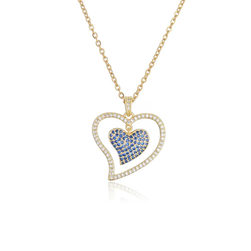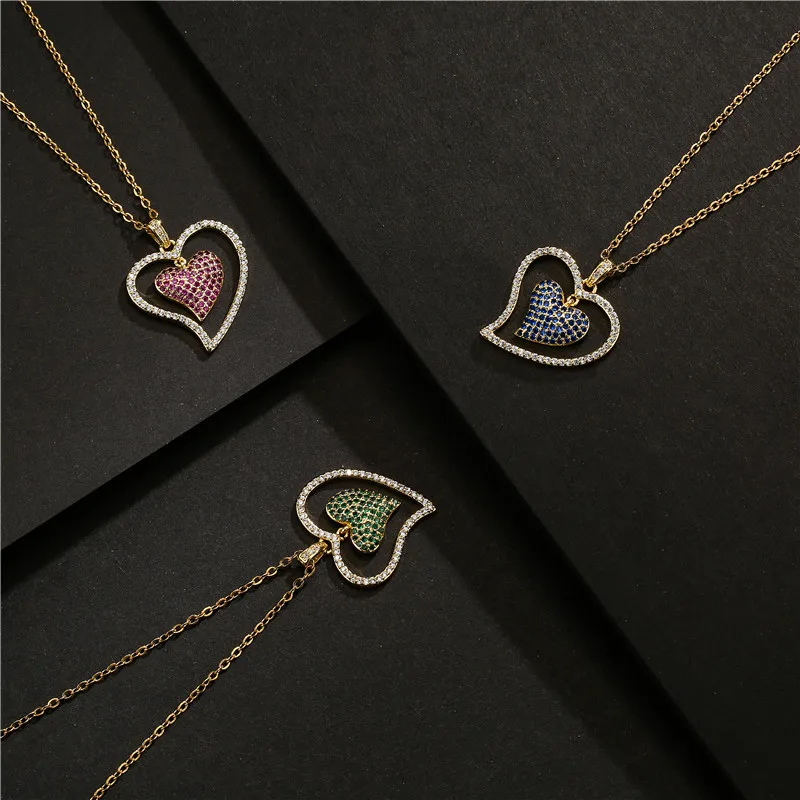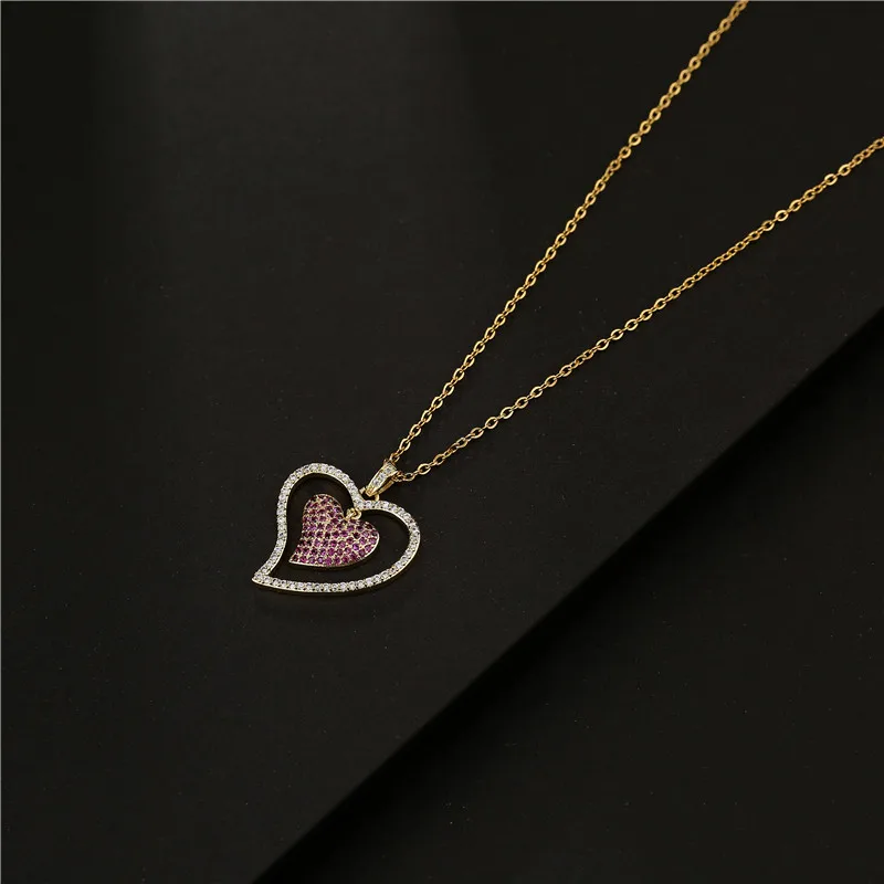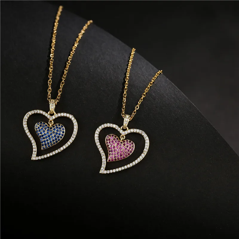 Новинка 2021, модное женское свадебное ожерелье, уникальный дизайн, ожерелье с двойным кулоном в форме сердца с кубическим цирконием, ювелирные изделия для вечерние, подарок
