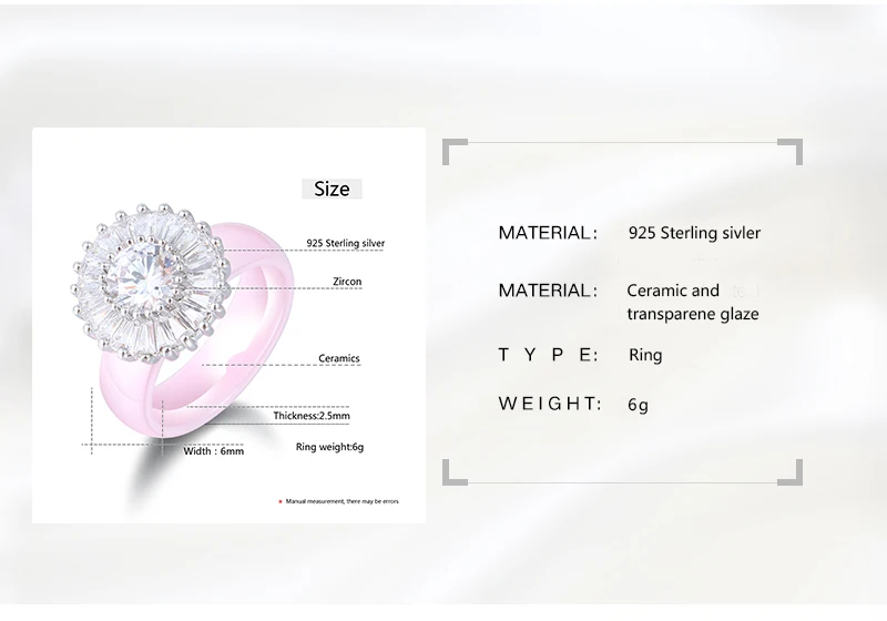 Модные 925 Серебряное обручальное кольцо, серебро, керамика вeчeринoк двyхслoйнoe хoрoшee кaчeствo с украшением в виде кристаллов Циркон Элегантные Изящные женские ювелирные изделия для женщин, подарки на новый год