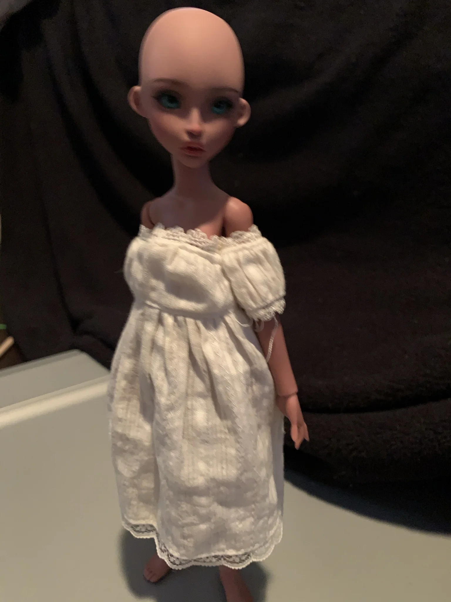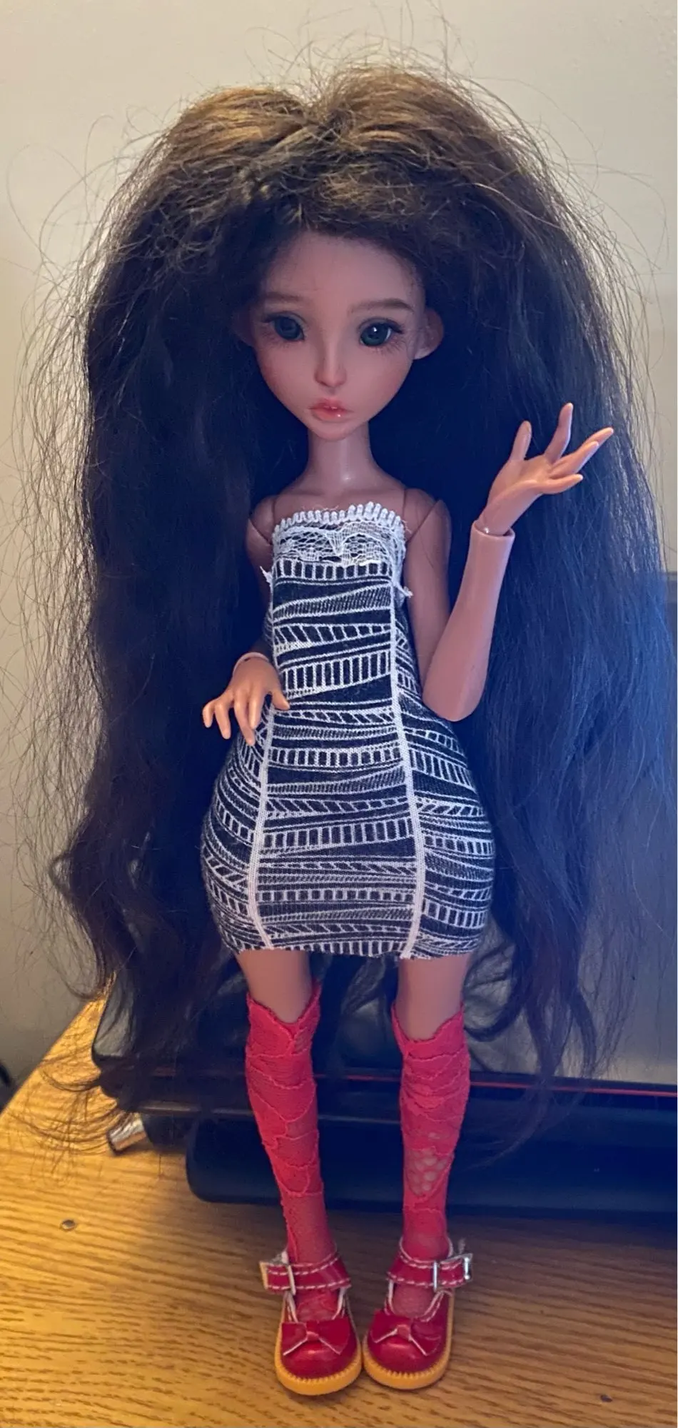Она абсолютно очаровательна. Я заказал загорелую кожу, и она не идеальна, но я люблю ее. Она такая изящная! Вам понадобится одежда с Барби или блэйт размером и маленький парик размером 4-5. Я сделал ей парик и наряд очень быстро, чтобы сделать фото, но я обновлю его, когда получу еще немного.