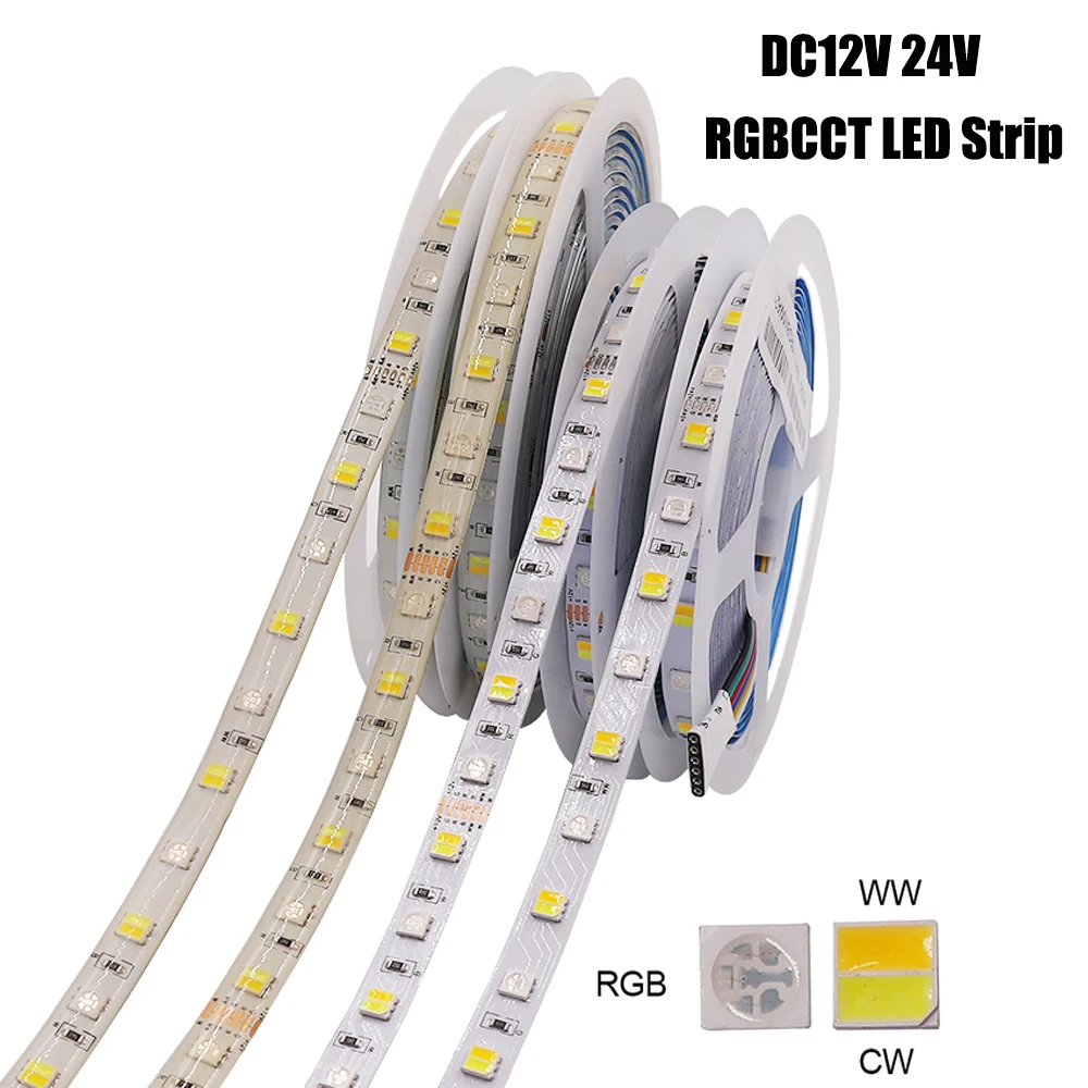 Светодиодная лента RGBCCT, 12 В, 24 В, гибкая светодиодная лента, Д...