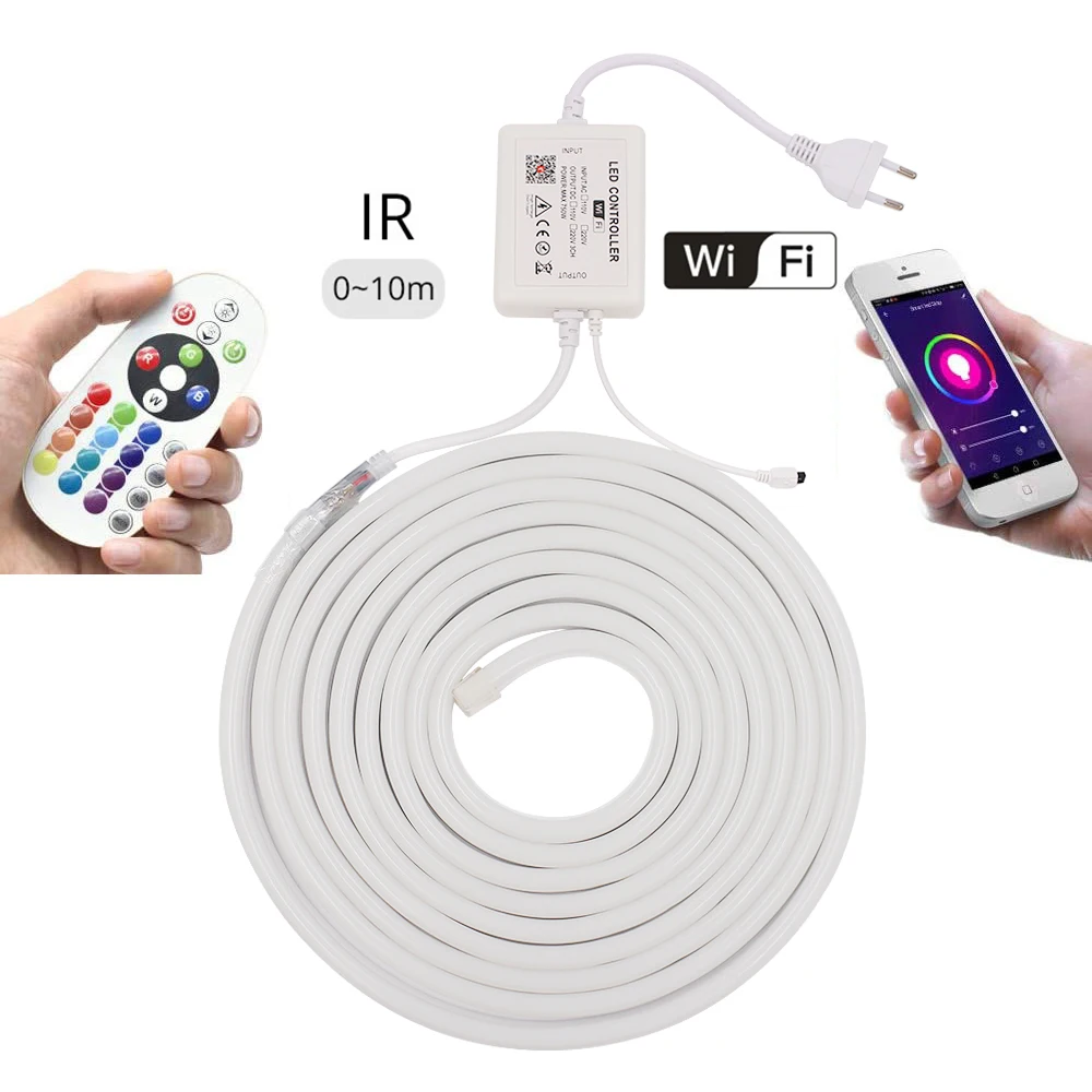 Wi-Fi RGB неоновые полосы светильник + 24Key дистанционного 5050 гибкий светодиодный лента с помощью приложения на телефоне Управление Водонепроницаемый неоновая вывеска для организаций и магазинов поводок 110V 220V