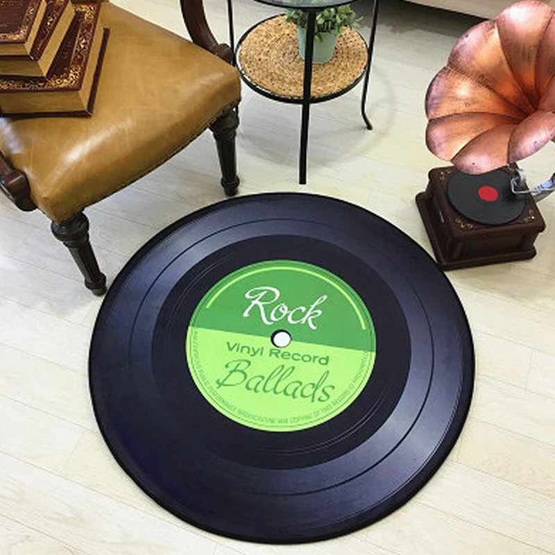 Ковры с 3D виниловыми пластинками, 5 размеров, противоскользящие, мягкие, в стиле ретро, круглые, для спальни, музыкальной комнаты, общежития, домашний коврик