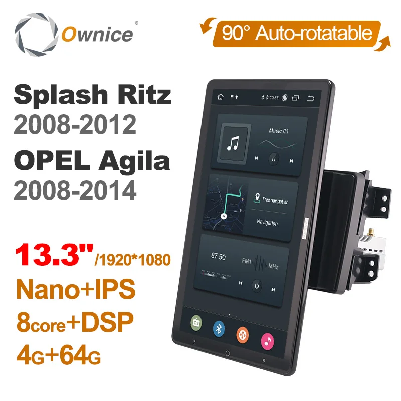 13,3 дюймов 1920*1080 Ownice Android 10,0 для SUZUKI Splash Ritz 2008 - 2012OPEL Agila 2008-2014, автомагнитола, вращающаяся