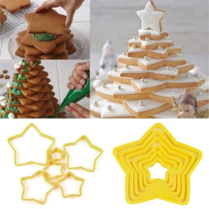 6 шт.компл. Рождественская елка для нарезки печенья в виде звезд Форма торта Печенье Резак пресс-форм