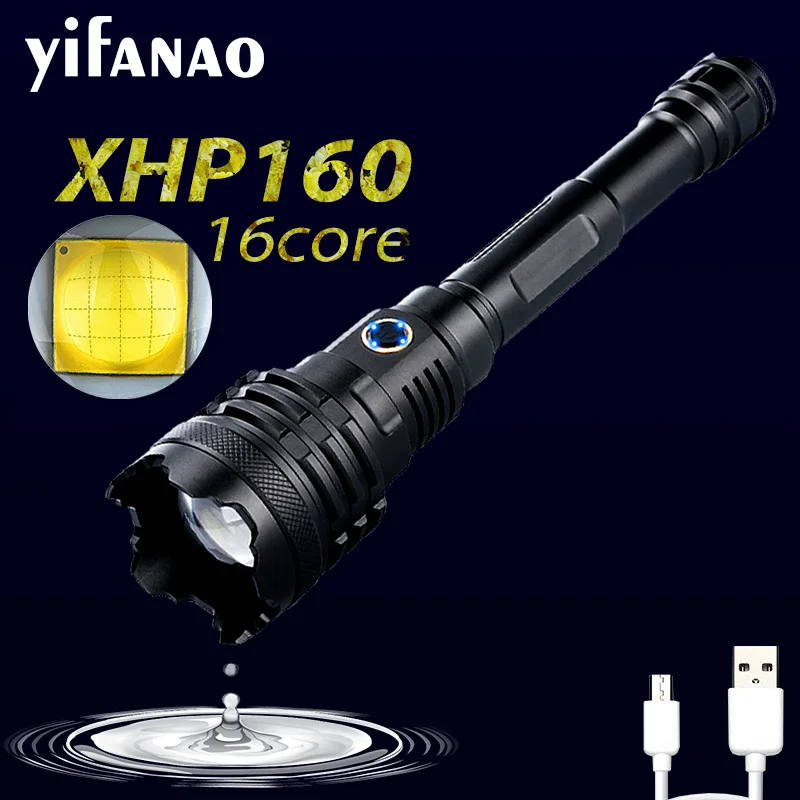 Xlamp XHP160 16 ядер самый мощный светодиодный фонарик 10000 мАч Usb Перезаряжаемый тактический фонарик IPX5 Водонепроницаемый как внешний аккумулятор