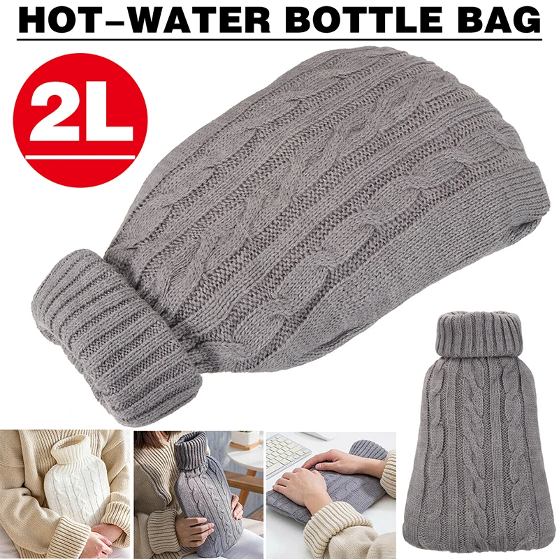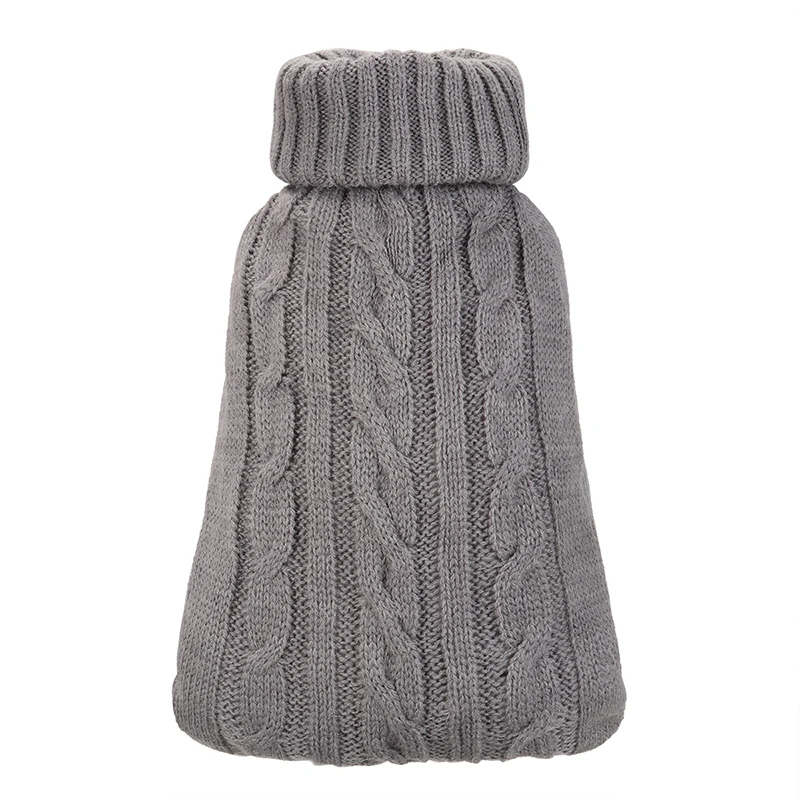 2L резиновые горячей воды бутылки вязаная сумка из полиэстера зимние кровать-грелка темно-серого цвета с защитой от ожогов, моющееся покрытие