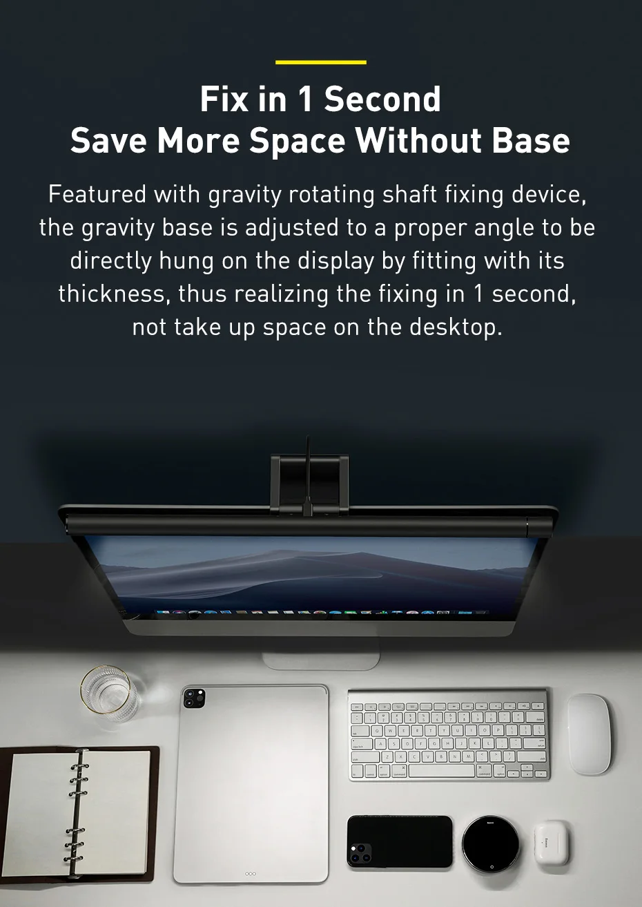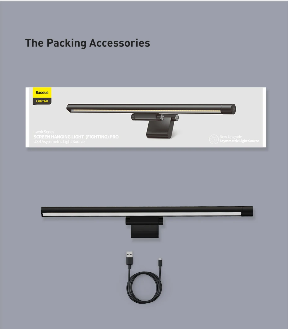 Светодиодный светильник Baseus для компьютерного экрана, настольная лампа для монитора ПК, подвесная настольная лампа для офиса, для чтения с плавным затемнением, ночсветильник с USB