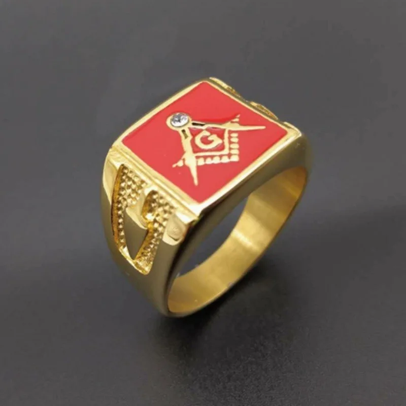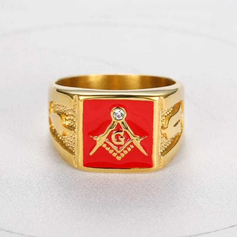 Классическое панк Красная эмаль масонский знак высокое качество металлическое кольцо мужской религиозный стиль амулет ювелирные изделия