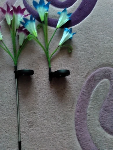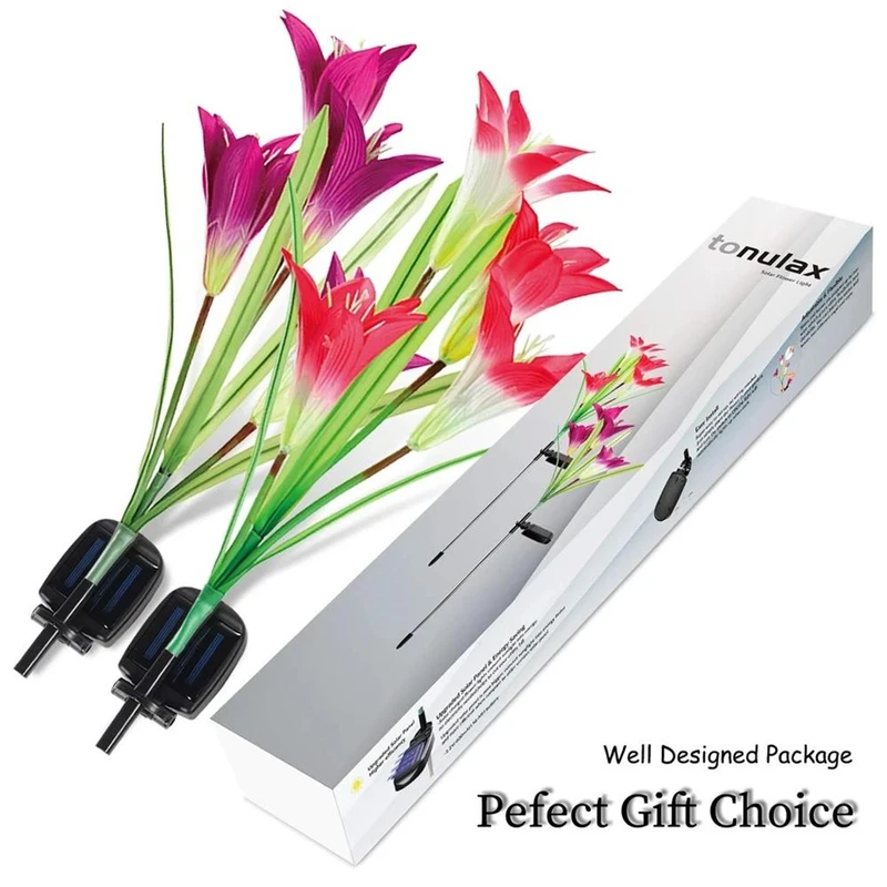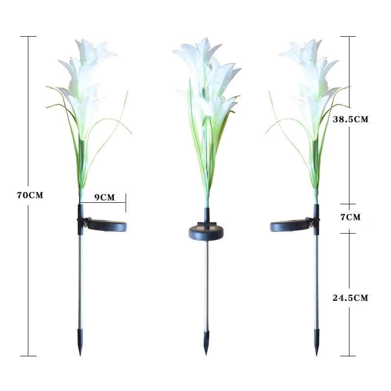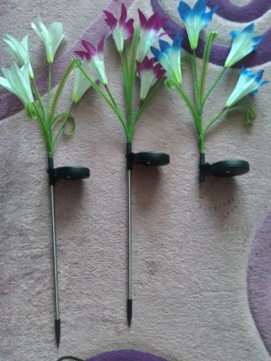 2. Лампа для смены цвета на солнечных батареях в саду с цветами лилии, загорается стебель с осадком.