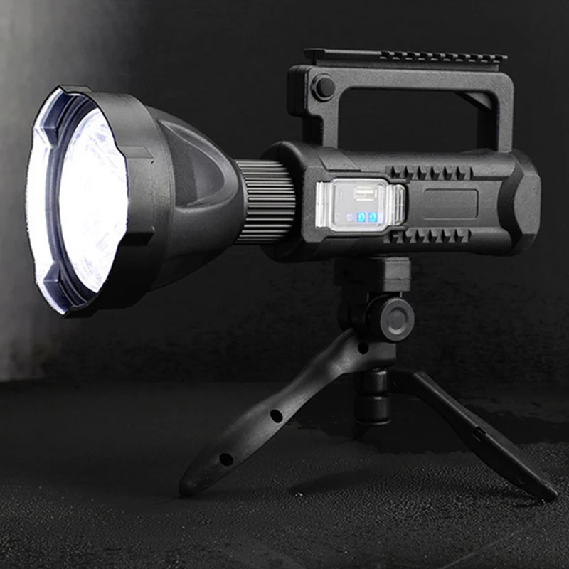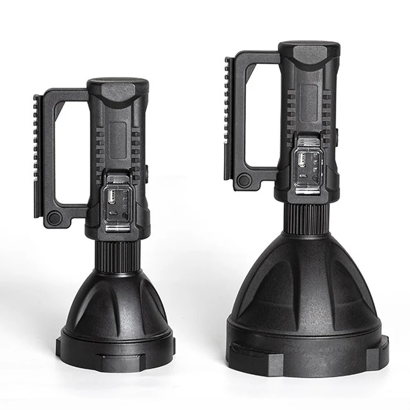 Особенности: 1. Перезаряжаемые батареи большой емкости: емкость батареи до 8000 мАч может дать вам долгое время работы на открытом воздухе. Интеллектуальная многократная защита (защита от перезаряда/разрядки) может поддерживать его в безопасности и сохранности при использовании в качестве мобильного питания для зарядки смарт-устройств. 2. Используется в качестве банка мощности: может служить в качестве банка мощности для зарядки вашего мобильного телефона и других устройств. Варианты размеров: 10,6*5,1 и 12,2*6,3. 3. Перезаряжаемый прожектор с сильной длительной мощностью 6 часов: не нужно бесконечно платить за батареи. Этот обновленный прожектор изготовлен из долговечного перезаряжаемого литий-ионного аккумулятора 18650 с большой емкостью (8000 мАч). И с 4 режимами вы можете сэкономить больше энергии, переключив режим низкой яркости. 4. Ударопрочный и водонепроницаемый: Изготовлен из жесткого, ударопрочного ABS и резинового водонепроницаемого разъема для защиты системы от царапин, падений, ударов и брызг. Не беспокойтесь, когда вы встретите дожди во время пеших прогулок, кемпинга, парусного спорта или охоты. 5. Удобный дизайн: удобная ручка вместе с регулируемым плечевым ремнем, делает его очень удобным. Вес от 0,618 г дает вам долгий опыт работы без усталости.