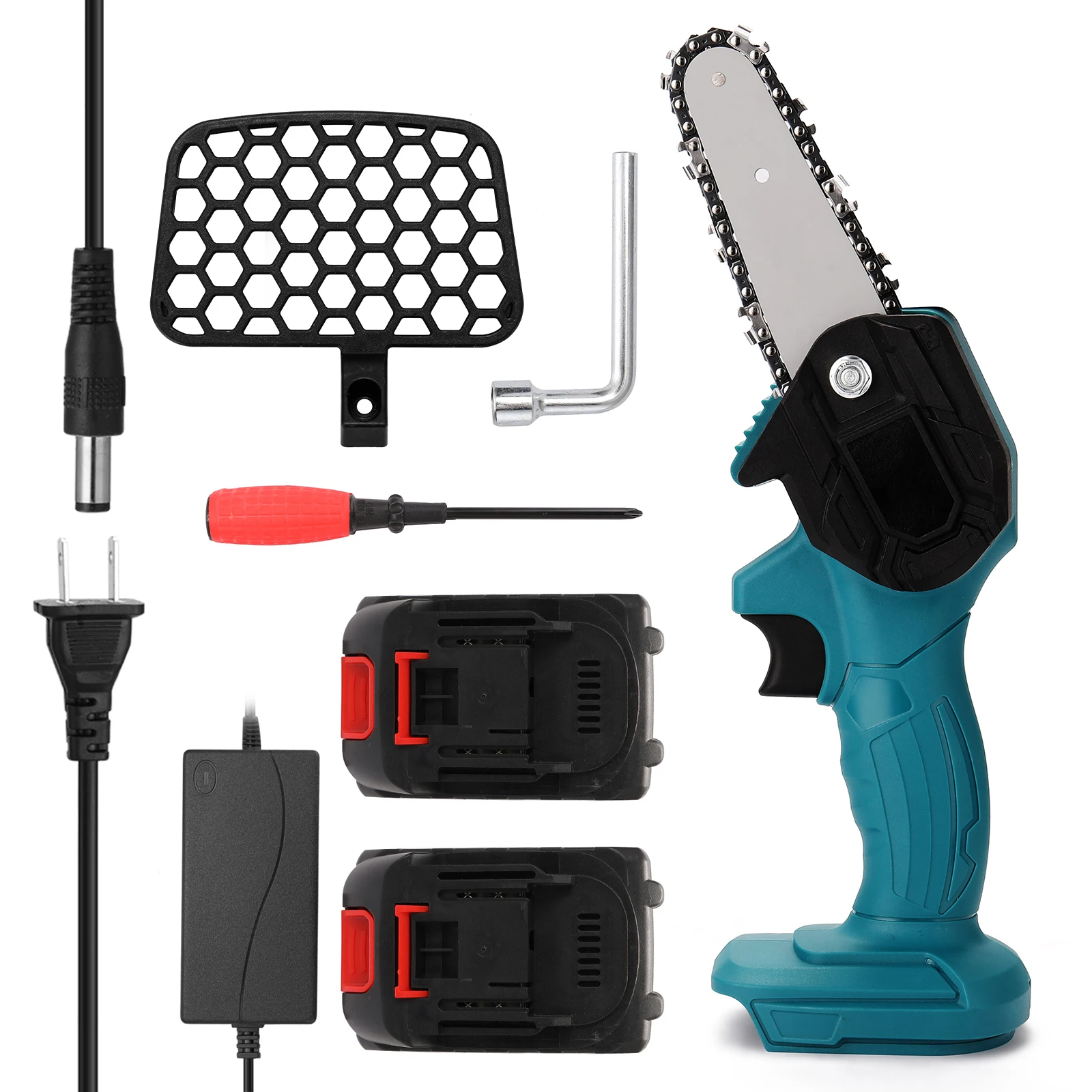 Изготовлен из высококачественного материала, практичен, прост в эксплуатации и использовании, широкий спектр применения, имеет длительный срок службы.Особенности:Перезаряжаемая Электрическая цепная пила светильник и портативная, длительный срок службы батареи, отсутствие повреждений коры.Светильник вес тела светильник и удобный светильник вес, долгое время держит и не устает руки.Щеточный двигатель из чистой меди, высокая мощность, быстрая резка, повышение эффективности.Практичный, быстрая скорость, низкое энергопотребление.Высококачественный переключатель, быстрая и медленная регулировка, бесступенчатое изменение скорости.Интеллектуальный плата управления цепью, защита от перегрузки, для удовлетворения различных потребностей в строительстве.Специальная направляющая пластина, шарик из вольфрамовой стали не нужно смазывать, благодаря чему машинка снижает сопротивление во время работы и снижает износ на машине.Небольшого размера, можно удерживать одной рукой.Высококачественная цепь направляющей пластины, глубокая закалка, более износостойкая, плавная резка.Характеристики:Материал: ABS + металлЦвет: синийТип: 1-4 (опционально)Аккумулятор: 2 * литиевый аккумулятор, 21V, 2000mAh (входит в комплект)Мощность: 550 ВтДлина направляющей пластины: 4 дюймаСкорость цепи: 5 м/сРазмер резки: < 100 ммВремя работы: одна батарейка на 1,5 часаПосылка: 300*120*110 мм/11,8*4,7 * 4.3inВес посылка: 1500 гКомплектация: (необязательно)1 * Электрическая цепная пила2 * Аккумулятор1 * зарядное устройство1 * гаечный ключ1 * отвертка