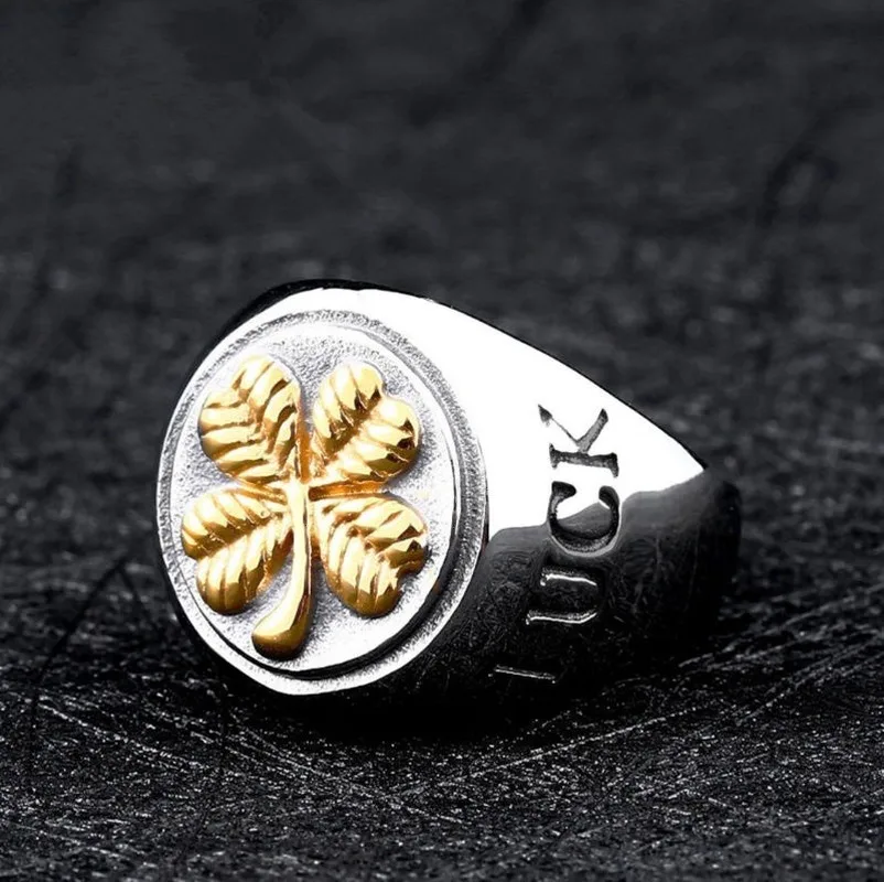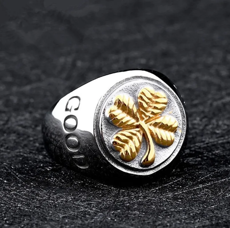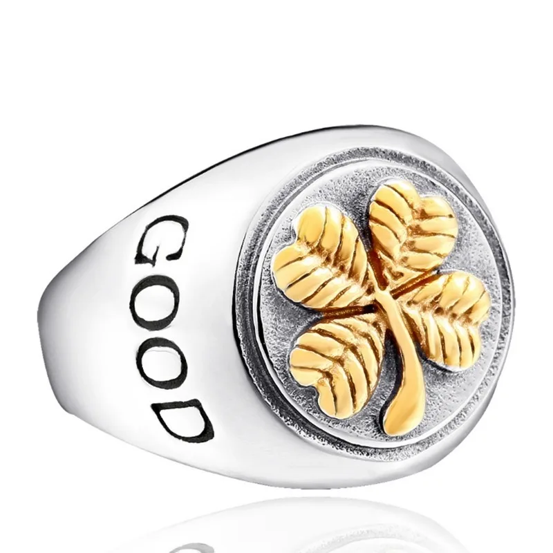 Модное изысканное Золотое кольцо на удачу с четырьмя листьями клевера мужское повседневное классическое ювелирное изделие в стиле панк