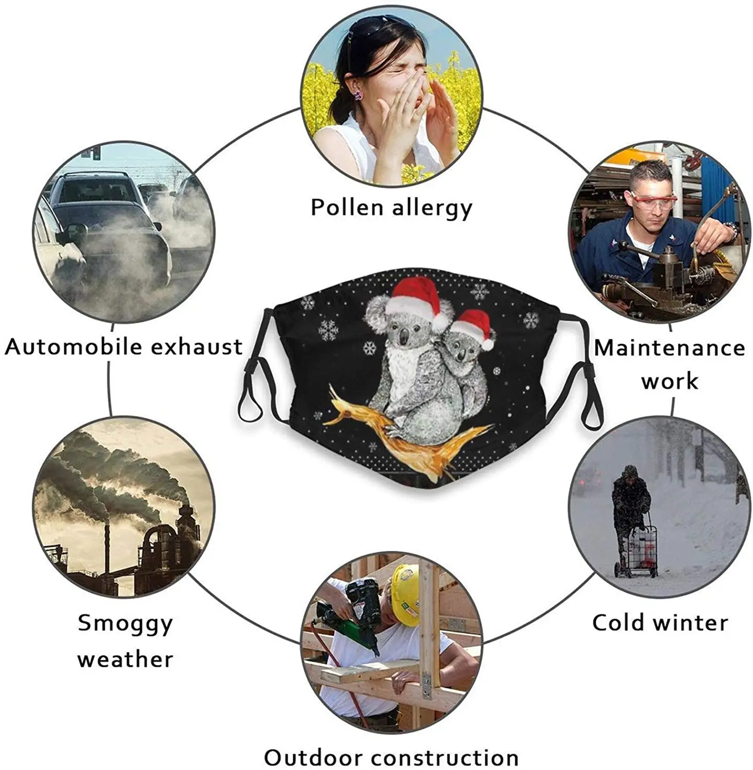 Маска для лица Koala с надписью Merry Christmas, Балаклава, моющаяся, многоразовая, с 2 фильтрами, для взрослых, женщин, мужчин, детей