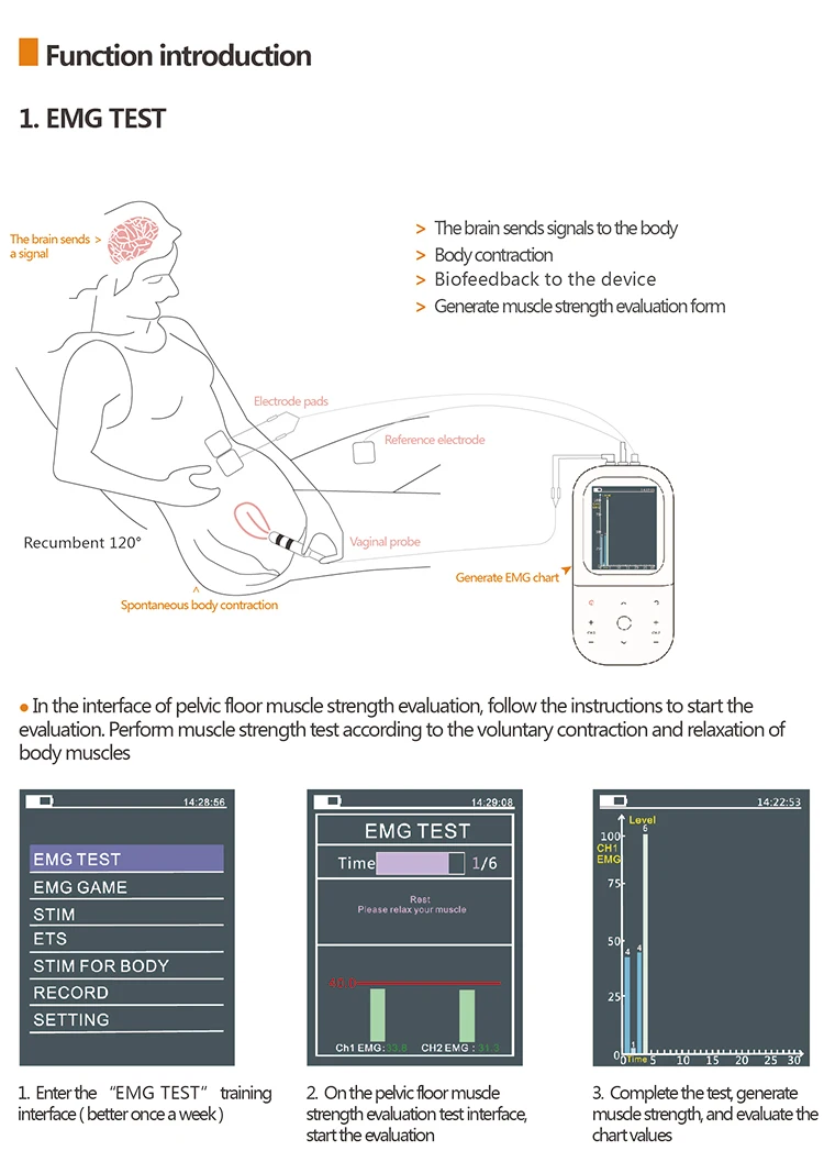 Биоотзывы с тазовым дном представляет собой серию процессов, диагностики и лечения деятельности мышц тазового дна с использованием электронных устройств, а электромиографический сигнал трансформируется в слуховой, визуальный или цифровой сигнал, обработка и предоставление «обратной связи», изучение с помощью информационного контроля обратной связи у пациентов с нервной/мышечной активностью и самодисциплинированной нервной активностью, Регулировка и поддержание поддержки группы мышц тазового дна, соноретрография. Мембранное закрытие и сексуальная функция. Используя технологию биообратной связи, биологическую инженерную технологию в сочетании с принципом биоинформатики, путем комплексной оценки пациентов с функцией мышц тазового дна, выберите индивидуальный план лечения, способствующий снабжению тазовой кровью, укрепление мышц тазового дна, снятие мышечного спазма, правильный режим мышечных движений, помощь пациентам в раннем восстановлении функции мышц тазового нерва