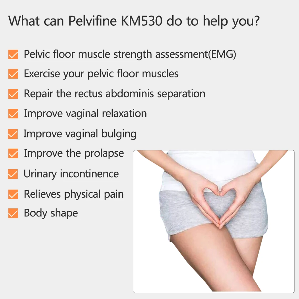 Мышцы тазового дна играют важную роль в контроле мочевого пузыря, прочности ядра и интимной сенсации. 1 из 3 женщин страдают расстройством тазового дна в течение их жизни, но есть простое решение для восстановления вашего тазового здоровья и обеспечения слабости мочевого пузыря и слабой близости не повлияют на ваше будущее счастье. Тяжело тренировать мышцы, которые вы не видите. Электронный тазовый тонер PELVIFINE KM530 удаляет догадки и является проверенным решением для улучшения слабости мочевого пузыря и интимного сенсации, а также предотвращения пролапса тазового органа.