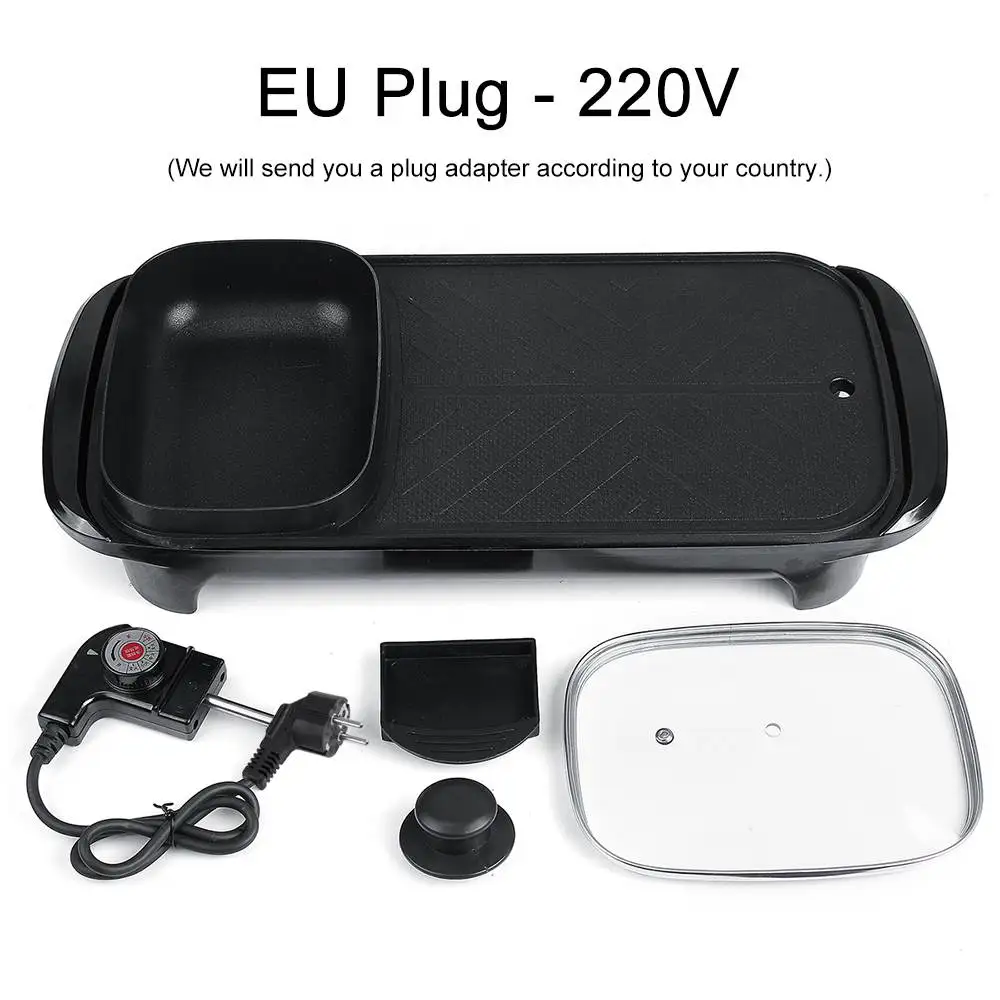 Посылка включает в себя:1 х сковородка для барбекюХарактеристики:Номинальная мощность: 1360 ВтНоминальная мощность: 220-50 ГцМатериал: литье под давлением из алюминиевого сплава + нержавеющая стальРазмер упаковки: 570x126x295 ммОсобенности:1. Специальная обработка при высокой температуре, Супер жесткий и супер износостойкий.2. Бездымный, не липкий, здоровый и экологически чистый3. Технология серебряного нано покрытия, твердая поверхность горшка4. Высокоточная нержавеющая сталь, никогда не ржавеет, устойчива к коррозии, легко моетсяМеры предосторожностиНе сушить горшок в течение длительного времениЭтот продукт рекомендуется использовать деревянную лопатуНе чистить стальным шариком после использованияПожалуйста, очистите его после использованияПримечание:1. Допускается погрешность в 1-2 см из-за ручного измерения. Пожалуйста, убедитесь, что вы не возражаете, прежде чем сделать ставку.2. Цвета могут отличаться, так как на дисплее разница, пожалуйста, поймите.3. Мы отправим вам адаптер в соответствии с вашей страной.