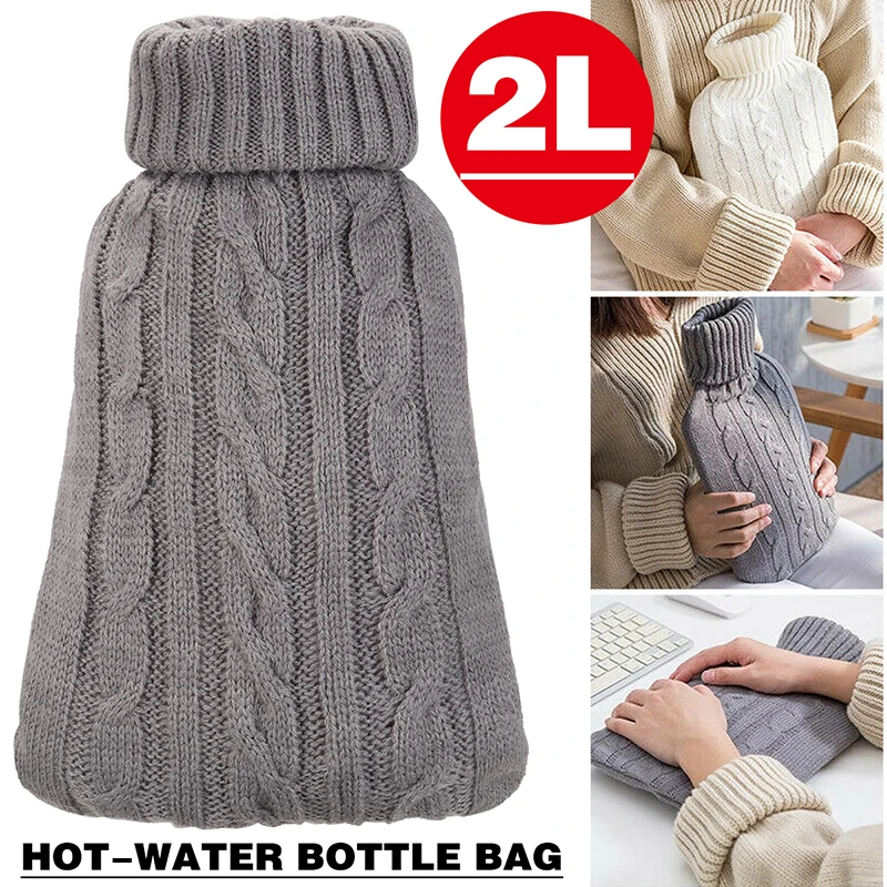 2L темно-серого цвета с защитой от ожогов крышка моющаяся Резина горяч-бутылка для воды вязаная сумка из полиэстера зимние кровать-грелка