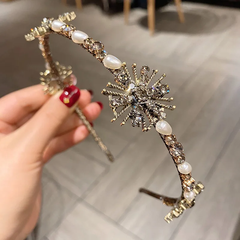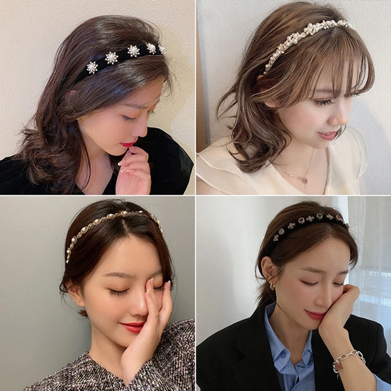 Повязка на голову женская бархатная, широкая, с жемчугом, LOVOACC, украшение с прозрачными стразами