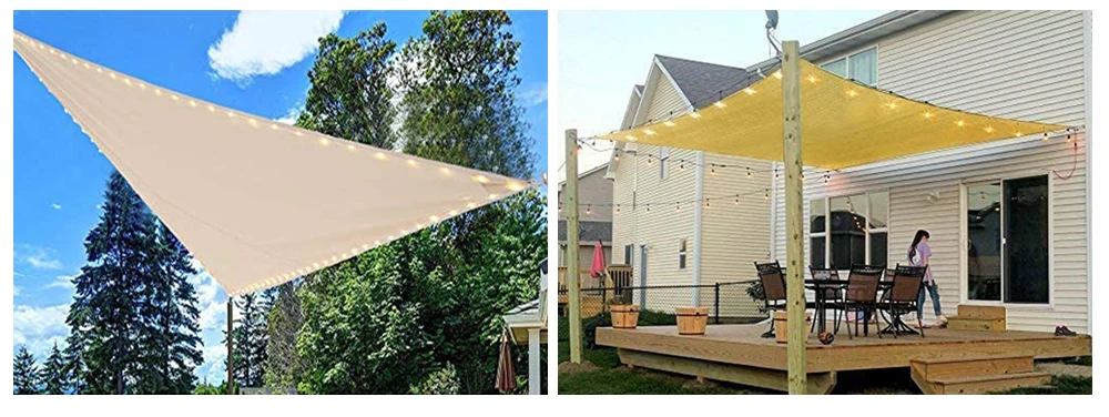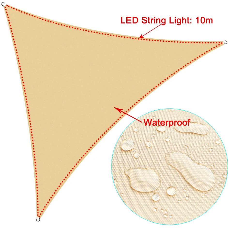 3x3x3 м треугольный тент парус светодиодный светильник струнные навесы Открытый водонепроницаемый Романтический Теплый Оксфордский тканевый солнцезащитный тент беседка садовый двор