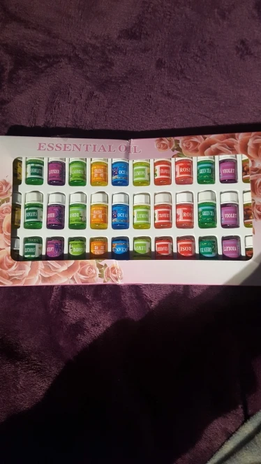 Очень хорошая коробка, они выглядят очень презентабельно, но это не важно, я не хотел покупать более дешевые масла, Я потратил еще несколько люков, и я купил этот набор "эфирных масел", которые правда в том, что масло не имеет ничего, это вода с краской x q или ароматом, Очень хороший продукт, ужасная покупка, я очень расстроен этой покупкой в конце концов потерянное время
