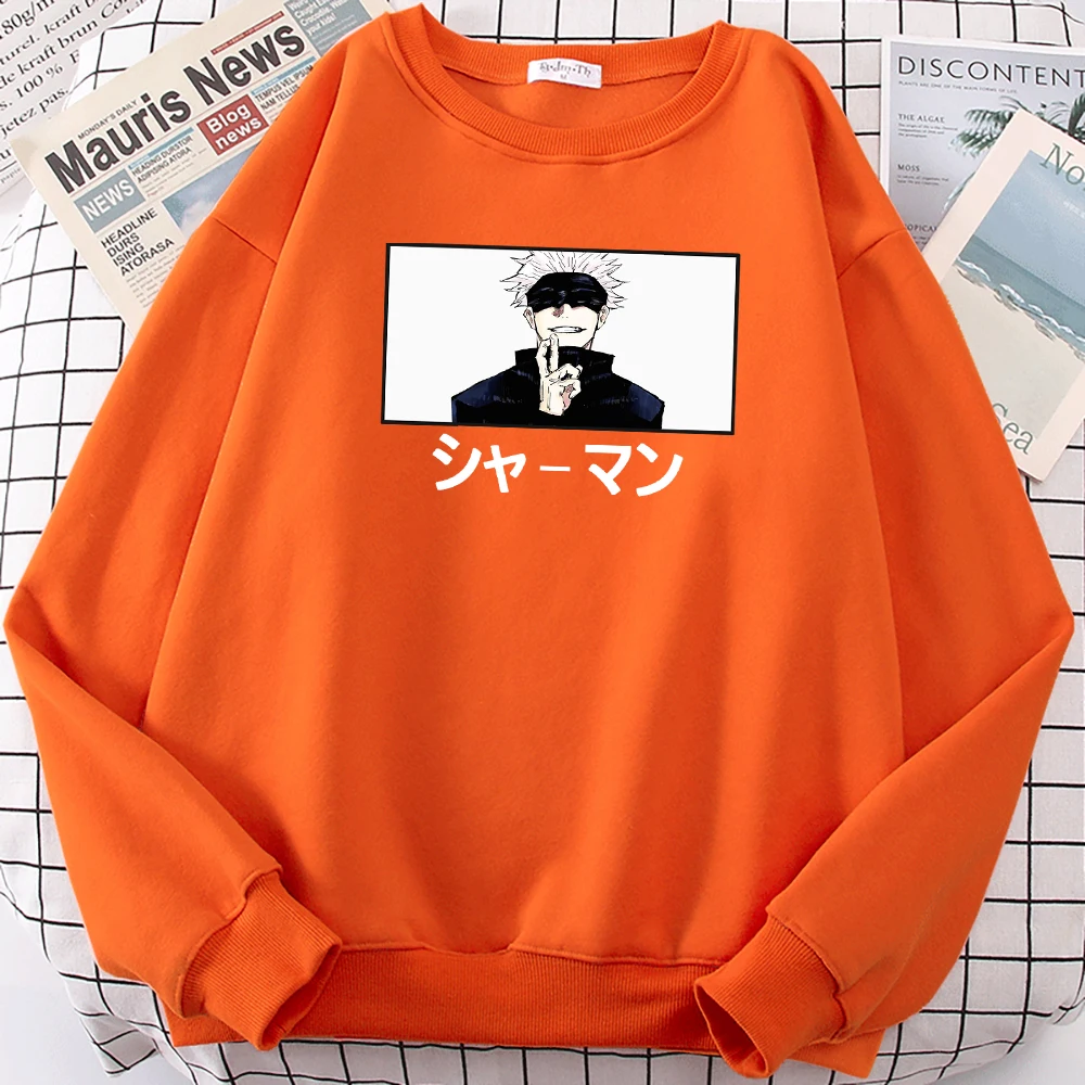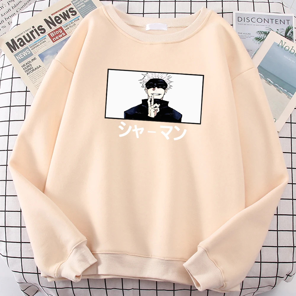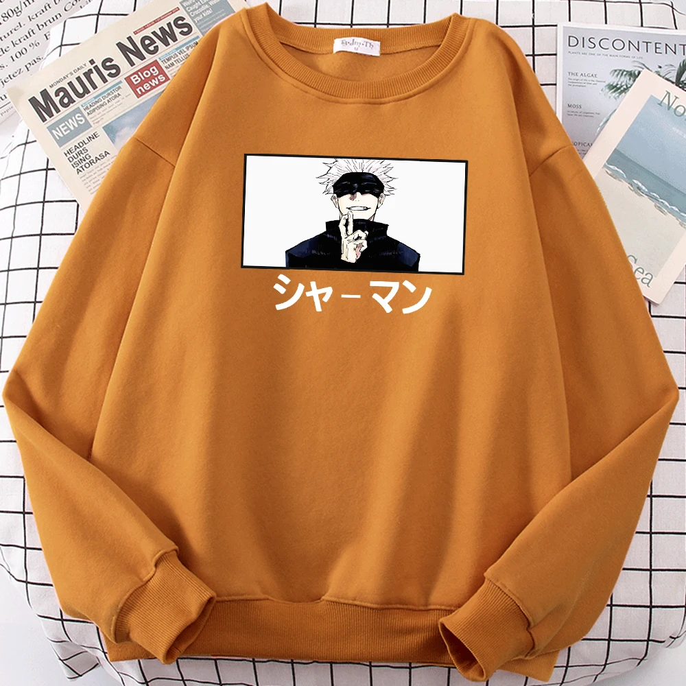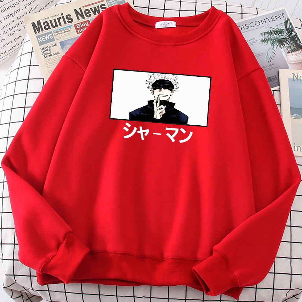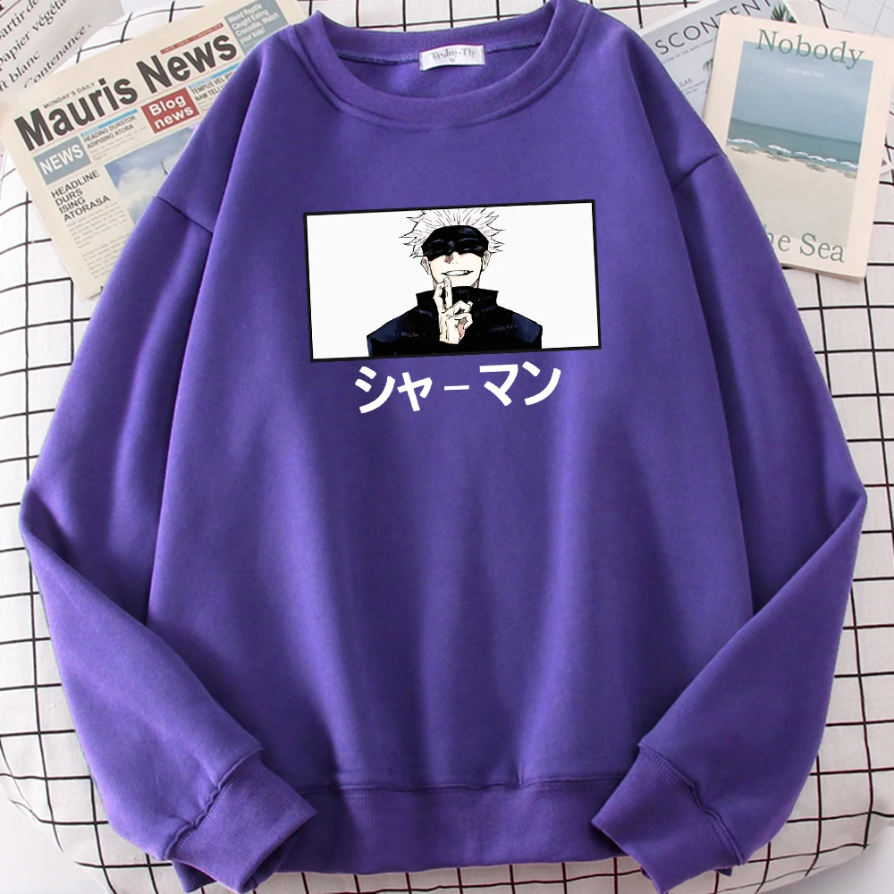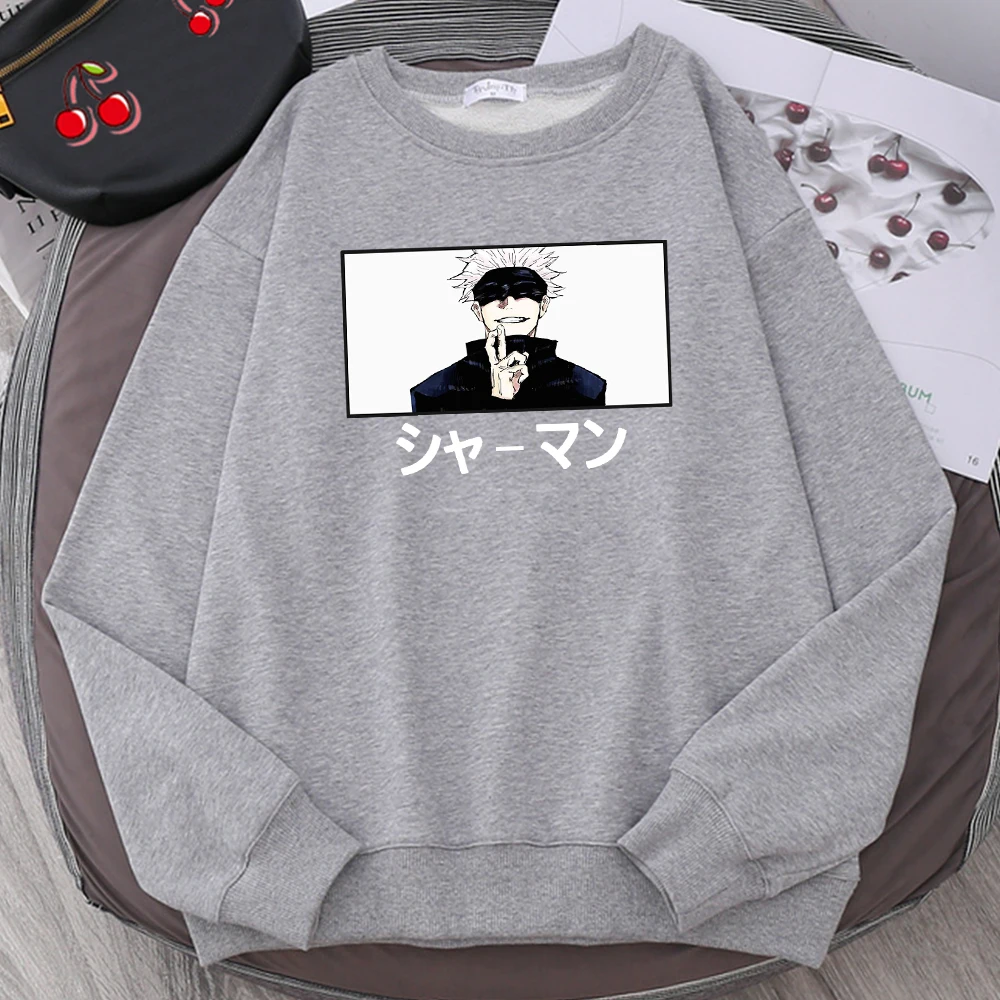 Satoru Gojo шаманского японские комиксы свитшот с рисунком, круглый воротник, длинные рукава для мужчин с круглым вырезом больших размеров Толстовка Harajuku модная одежда флис свитер с капюшоном в стиле унисекс