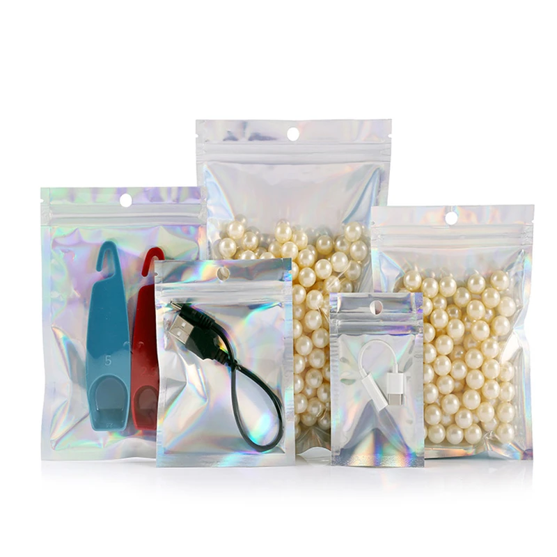100 шт. пузырчатый пакет, полупрозрачные пакеты с застежкой-молнией, голографический пакет для хранения, рождественский подарок, упаковка, носки, сексуальное нижнее белье, перчатки, косметика