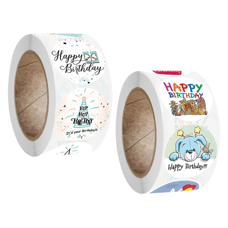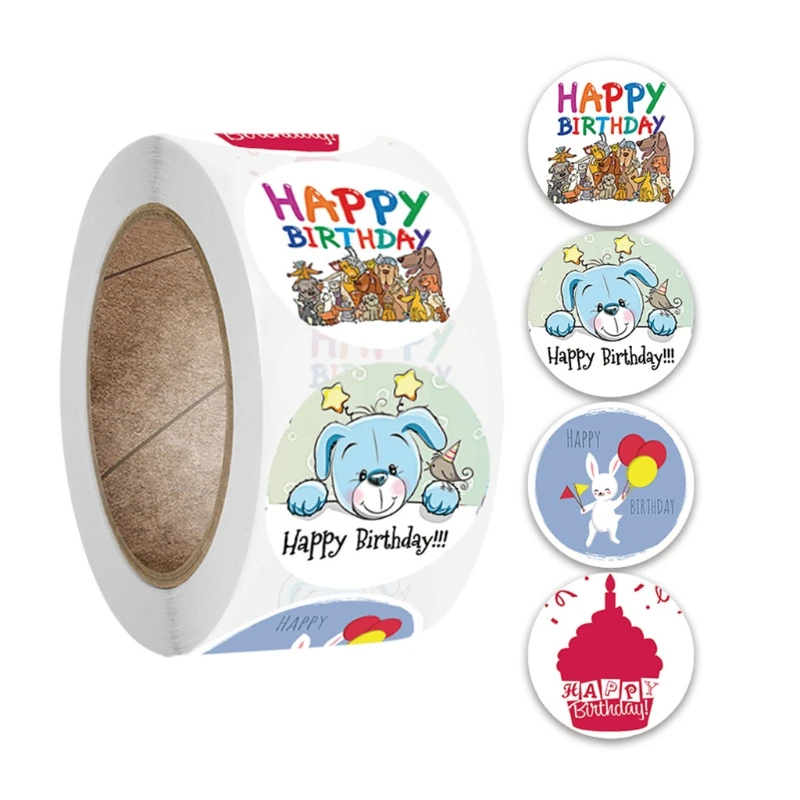 Наклейки круглые для скрапбукинга, для детей, с днем рождения, 500 шт.рулон