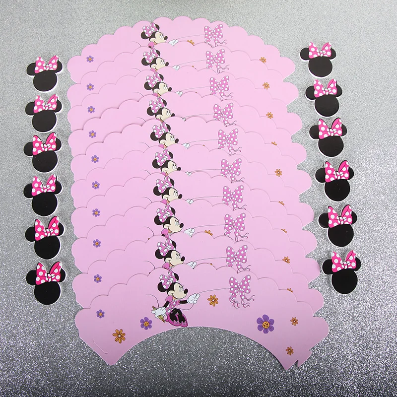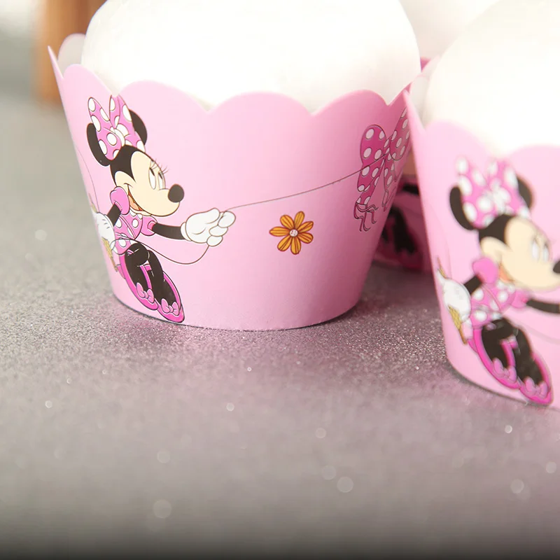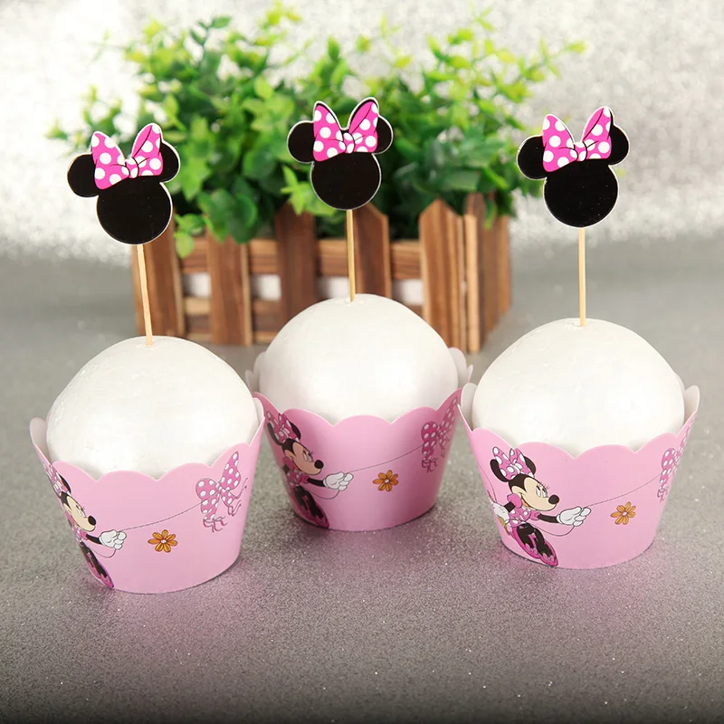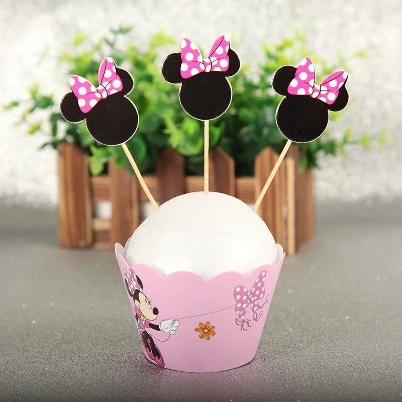 24 шт.лот топперы для торта, торты на день рождения, розовая чашка, топпер для торта Минни Маус вечерние, украшение для дня рождения, детские бумажные принадлежности для кексов