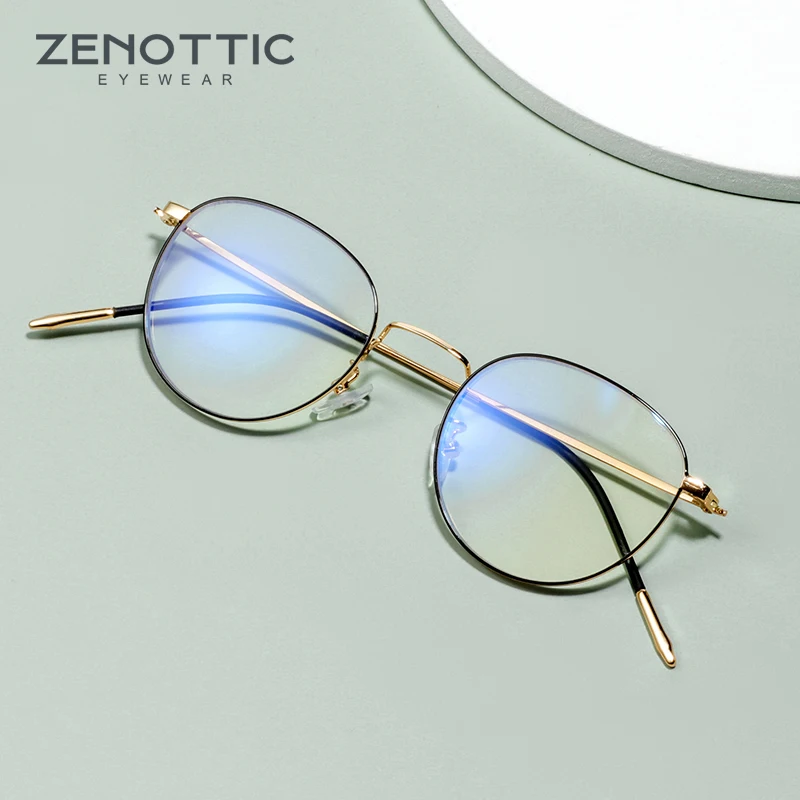 Круглые очки ZENOTTIC с защитой от сисветильник для компьютера, женские роскошные брендовые оптические очки из сплава, винтажные очки для близорукости, оправа